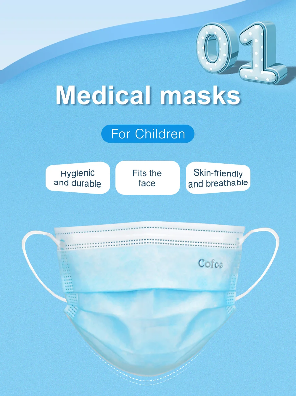 Одноразовая медицинская маска Cofoe, 3-слойный Нетканый фильтр маски из ткани для детей