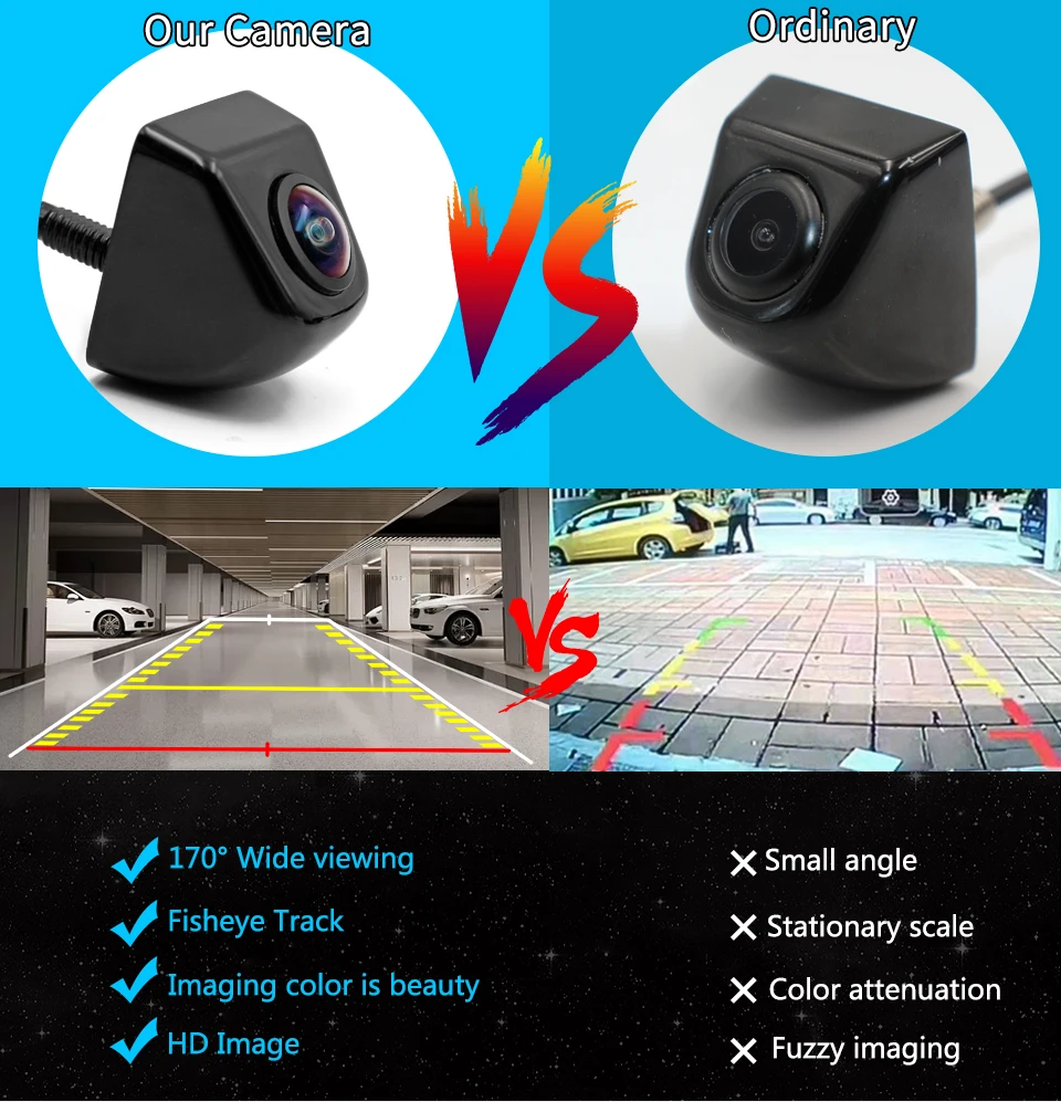 "Особенности • MCCD 2020 новые импортные 4089T чипы CCD Реверсивный трек с отличной четкостью изображения, стабильностью и ночным видением пикселей 1280*720P HD. • Поддержка видеосистемы NTSC. Высокая степень водонепроницаемости: IP67. • Высокая четкость и угол обзора 170 градусов. Как рыбий глаз. • Низкий светильник ночного видения, 15 м видимое расстояние для ночи. • Может использоваться в качестве камеры заднего вида. • Опциональная линия шкалы расстояния. • 6M RCA видео разъем. Подходит для dvd-плеера Android и любого автомобильного монитора TFT. • Подходит для любой модели автомобиля. • Новый Материал корпуса: Высококачественная нержавеющая сталь, алюминиевый сплав. Против царапин. Водонепроницаемый."