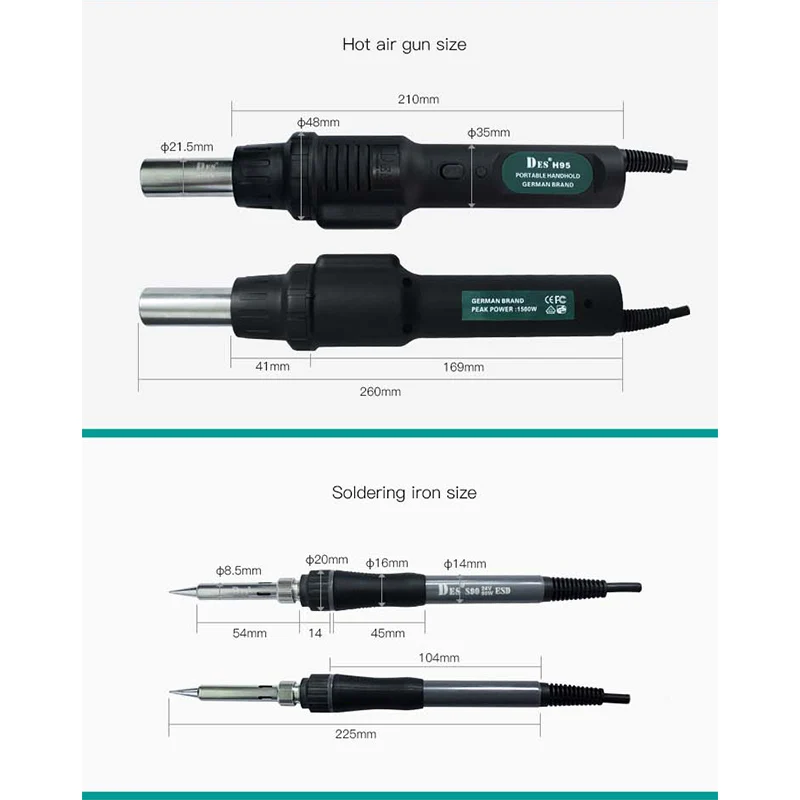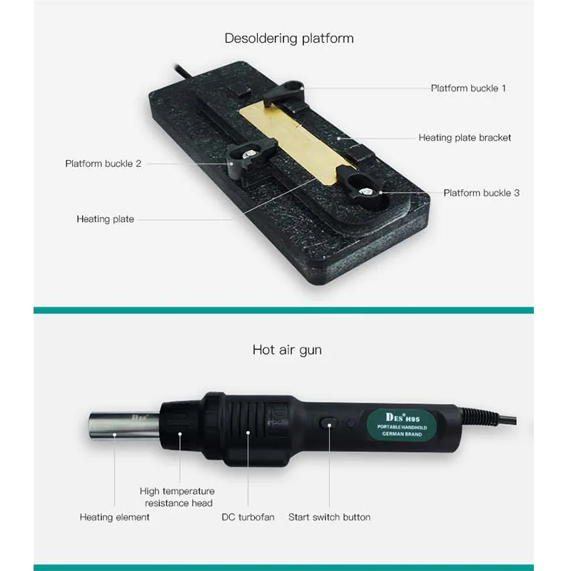 DES H95 1600 Вт 5 в 1 паяльник BGA паяльная станция SMD комплексный Ремонтный комплект для ремонта материнской платы iPhone Andorid