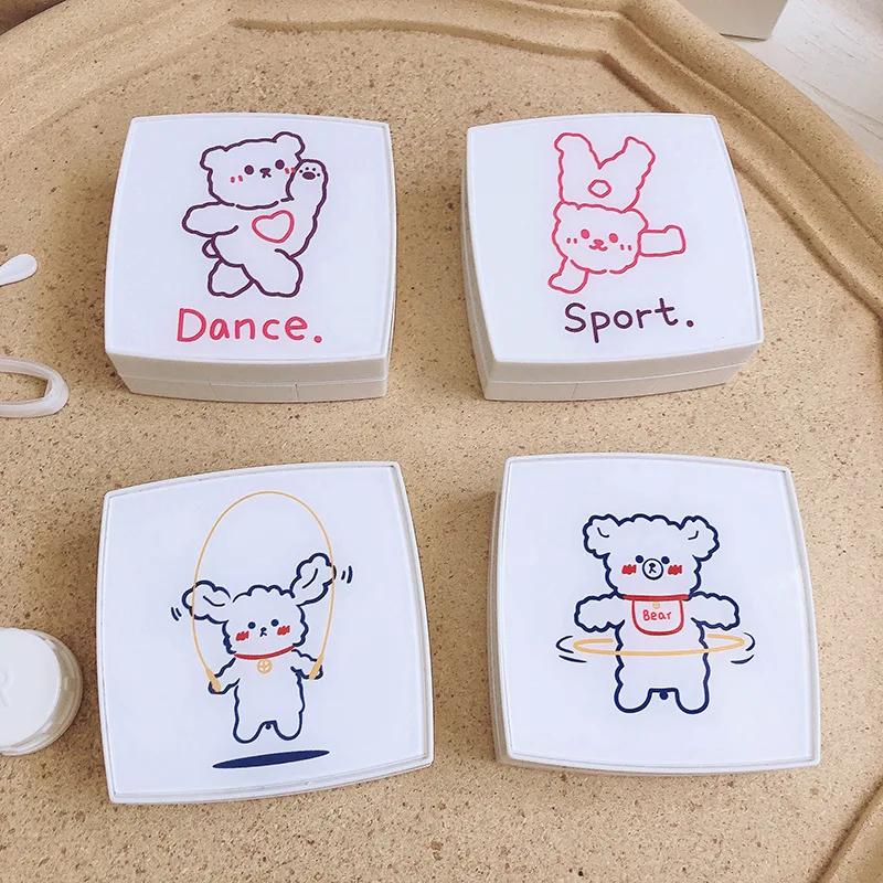 NUM:GC0308 Размер: 6,6*6,6*2,6 см Материал: Медицинский Пластик Цвет: 4 цвета В комплект входит: чехол для контактных линз, зеркало, пинцет, всасывающий стержень, бутылка для жидкости, двойная коробка
