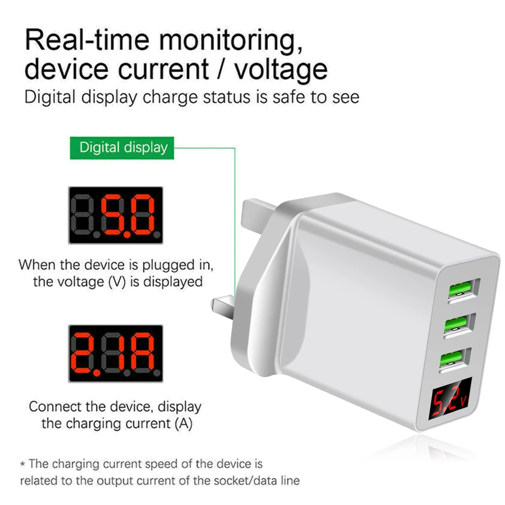 1 шт. 2020 новый портативный 3 мульти-порта Быстрая быстрая зарядка светодиодный дисплей USB трансформатор концентратор настенное зарядное устройство адаптер Великобритания ЕС США вилка