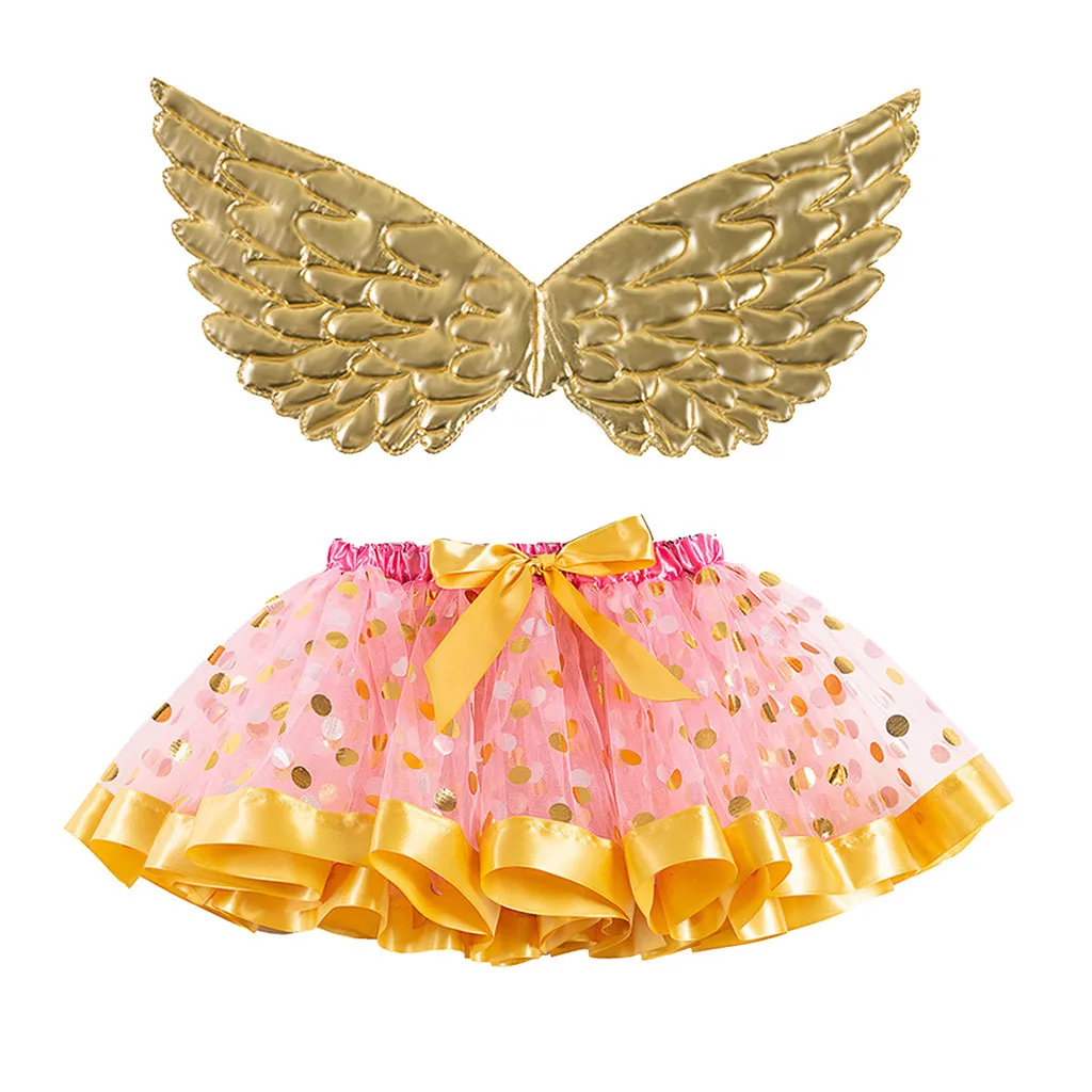 Детские вечерние танцевальные балетные костюмы на Хэллоуин для девочек, фатиновая юбка + наборы крыла