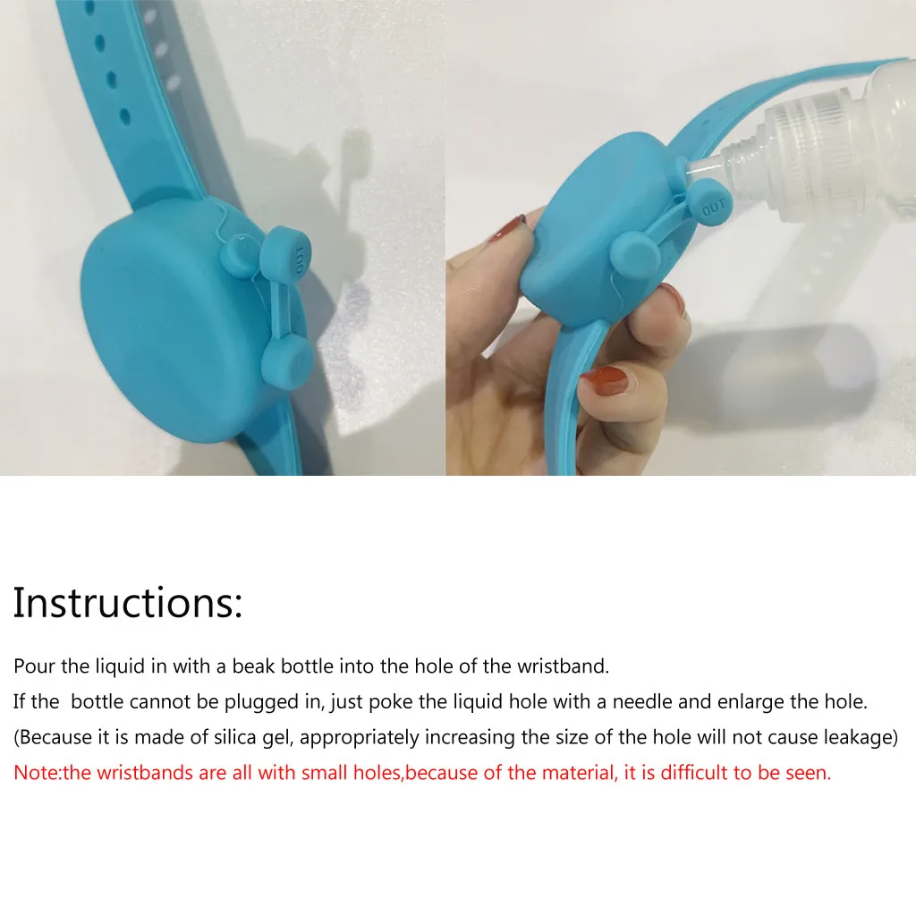 Влейте жидкость в бутылочку из клюва в отверстие браслета.