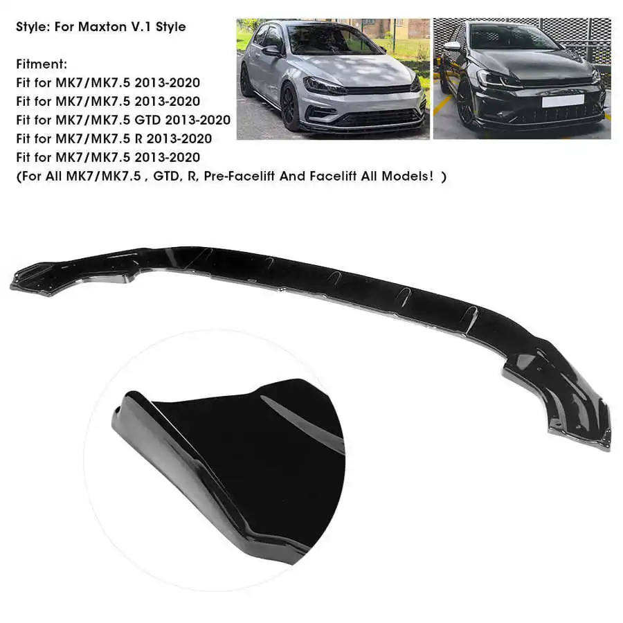 Глянцевый черный передний бампер спойлер для Maxton Style Splitter подходит для MK7/MK7.5 GTD R 2013-2020