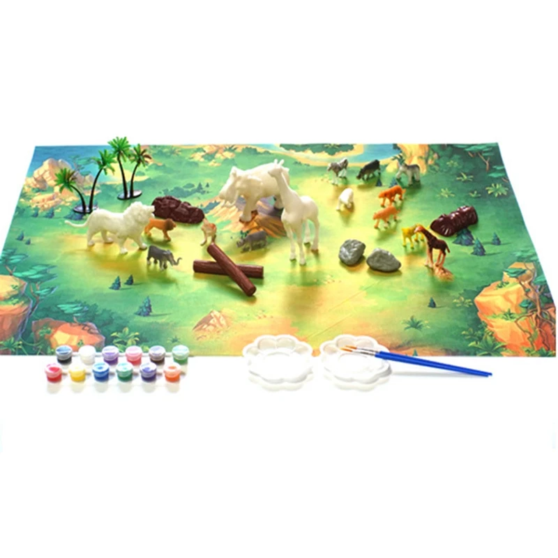 [Материал] покраска на водной основе с прочными пластиковыми животными из АБС-пластика. Отличный детский набор для рукоделия и искусства, набор для рисования.
