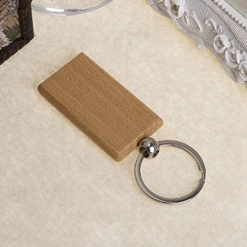 Горячие 60 шт пустые прямоугольные деревянные брелки для ключей Diy Деревянные брелки для ключей может выгравировать Diy подарки