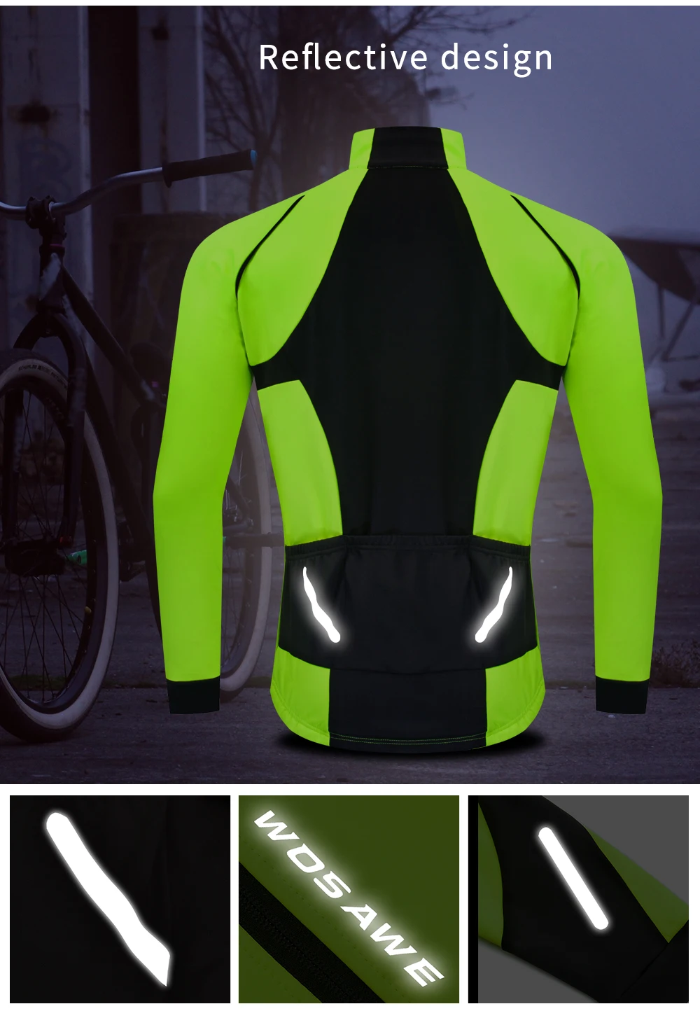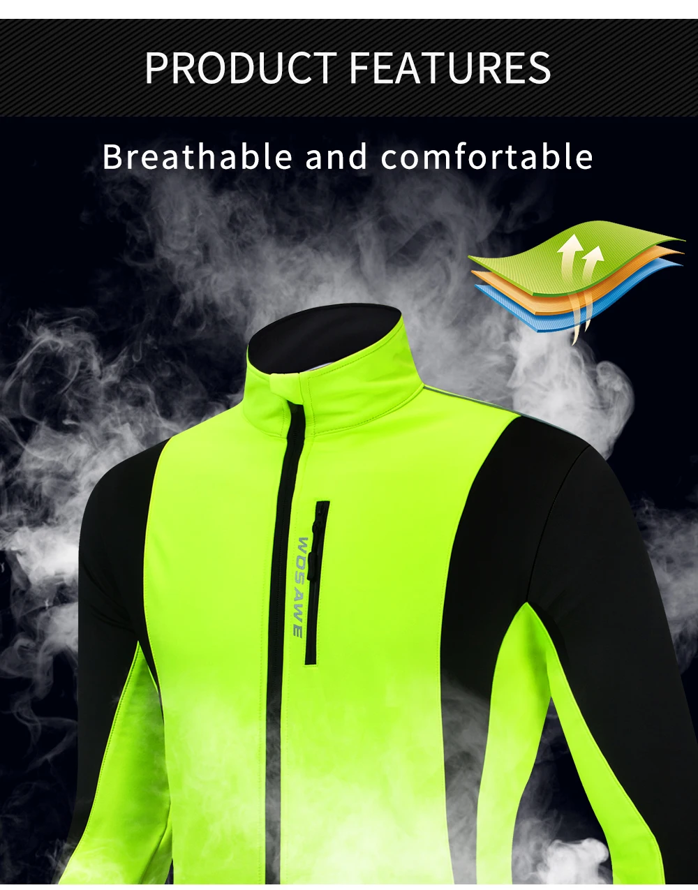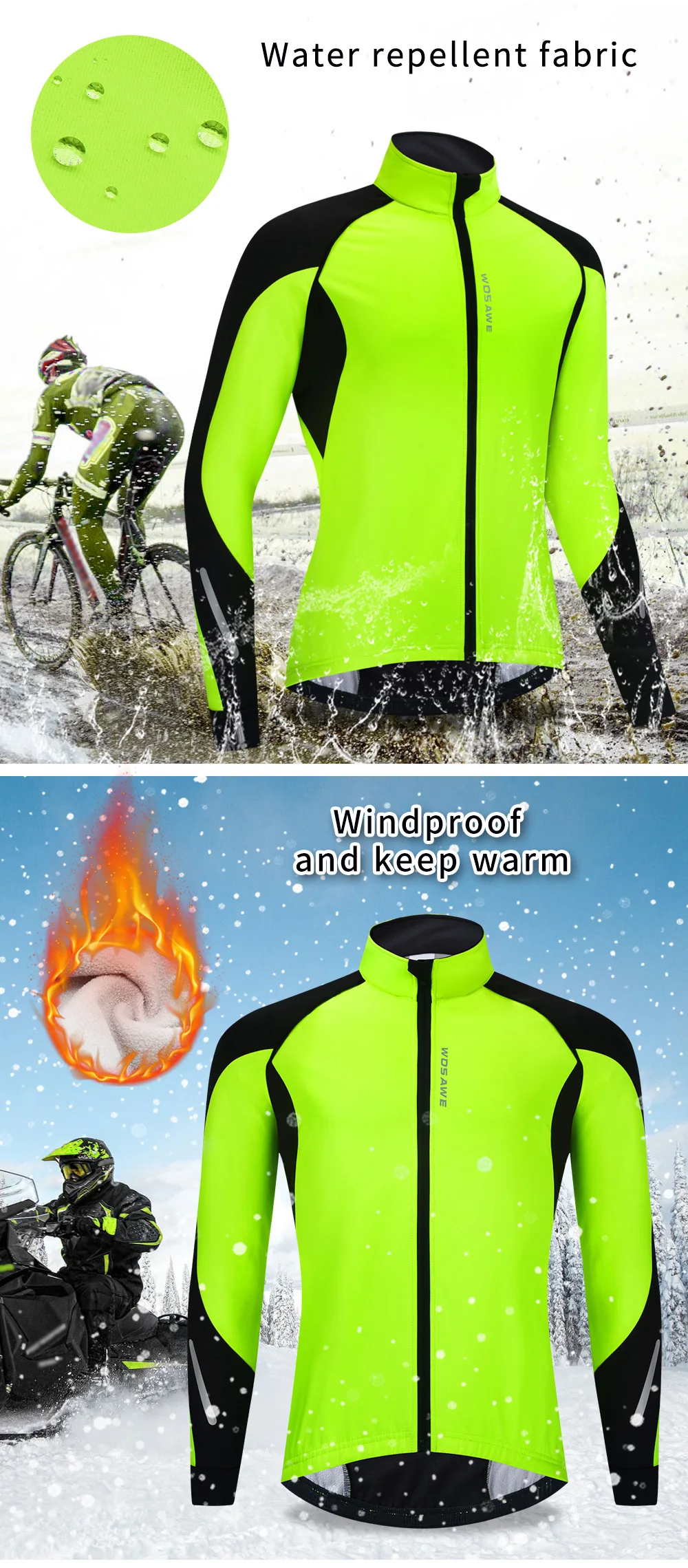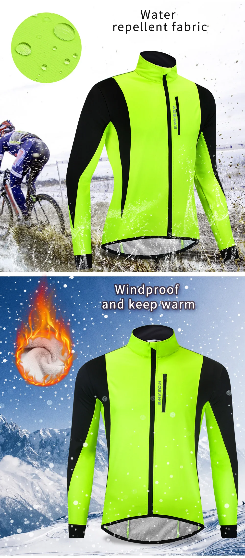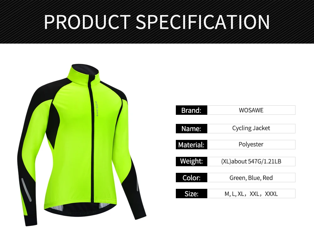 Описание BL261: WOSAWE осенне-зимняя Флисовая теплая ветрозащитная спортивная куртка для верховой езды Особенности продукта: Светоотражающий логотип Эластичная Подшивка Передняя молния на груди Дизайн с высоким воротником Дизайн заднего кармана Ветрозащитный и теплый Водоотталкивающая ткань Устойчивый к царапинам вырез Посылка включает в себя: 1 велосипедная куртка Спецификация: Название: велосипедная куртка Цвет: зеленый Материал: полиэстер Размер: M, L, XL, 2XL, 3XL Вес: (XL) около 551 г/1,21 фунта Пол: человек Применение: мотоциклы, лыжи, Велоспорт, велосипед, бег, туризм, велосипеды, спиннинг, альпинизм и другие виды спорта на открытом воздухе