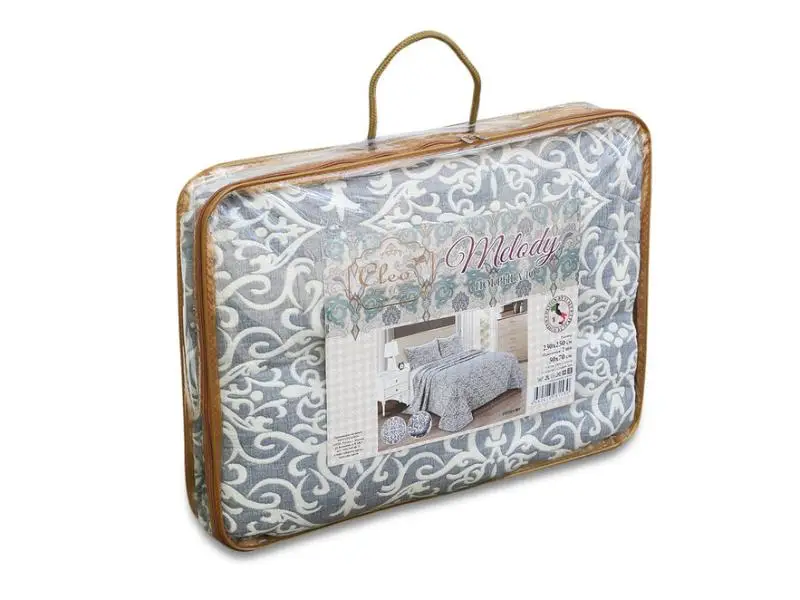 Покрывало MELODY восторгает своим узором на французский манер, а сложное жаккардовое переплетение нитей создает рельефную фактуру ткани, что является существенным элементом красоты вашей спальни. В комплект входят две наволочки 50х70 см - их обратная сторона изготовлена из сатина в тон основной расцветке. Это покрывало украсит интерьер вашего дома, а так же прекрасно подойдет в качестве подарка для друзей и близких.