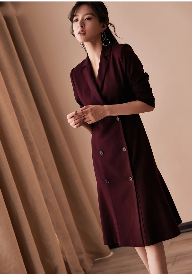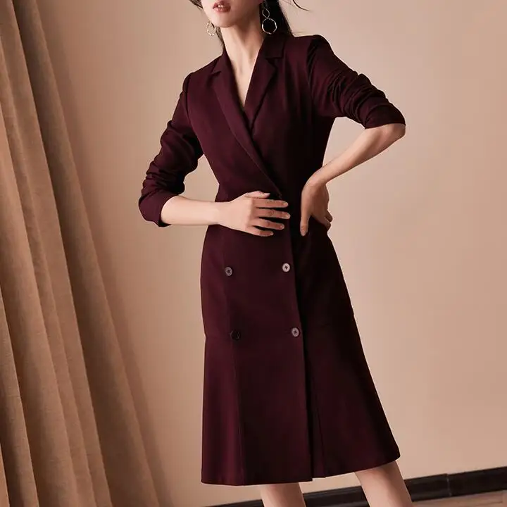 Женское платье, элегантный двубортный пиджак с длинным рукавом, офисное платье размера плюс, Осень-зима 2019