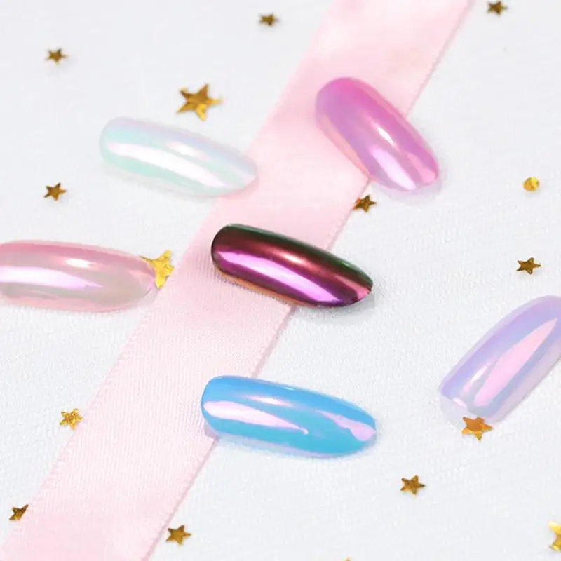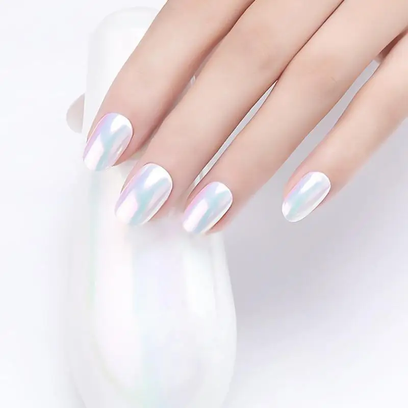 Это очень практичный неоновый порошок. Он блестящий и гладкий, с мелким порошком, жемчужным блеском, радужным зеркалом, оттенком цвета, здоровым и долговечным