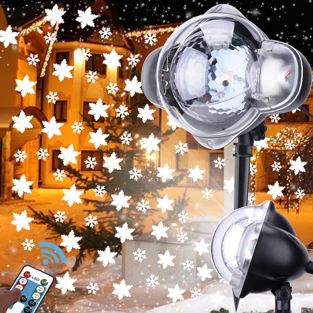 Светодиодный динамический движущийся снежной светильник для проектора, уличный Рождественский светильник, точечный светильник, большой и маленький снежинки, проектор, садовое изображение, Ландшафтная лампа, украшение
