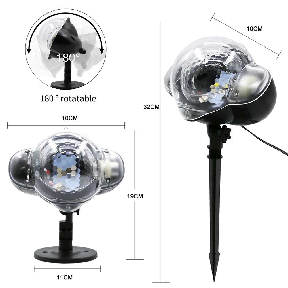 Подходит для рождества, Дня Святого Валентина, детского дня или дня рождения, небольшой компактный размер с 3 м/10 футов шнуром питания, Проекционные световые точки покрывают более 900 квадратных метров (3000 квадратных футов) на расстоянии 10 м (33 фута), с колом, который может быть подключен к земле во время наружного использования.