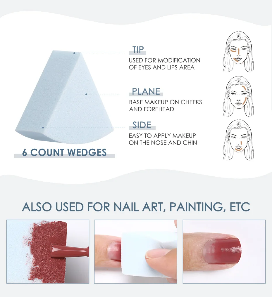 FOCALLURE, косметическая пуховка, 6 шт., на танкетке, профессиональная губка для макияжа, мягкий инструмент для макияжа, для макияжа и дизайна ногтей
