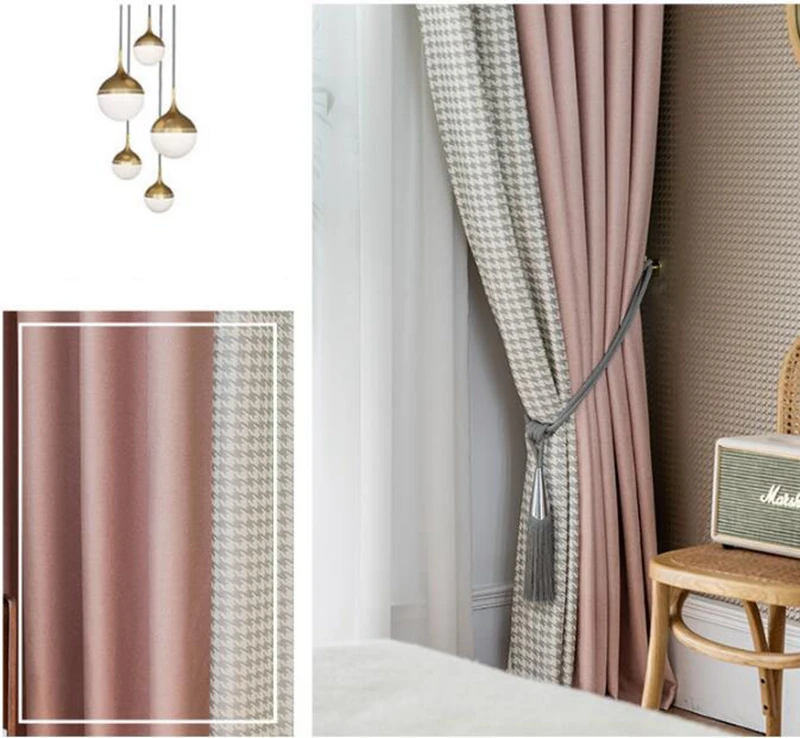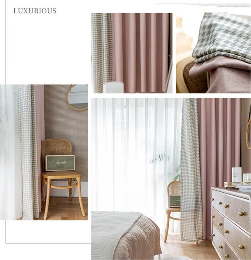 Светильник, роскошный, скандинавский стиль, в клетку, розовый, бархат, льняная ткань, затемненные шторы для девочек, современные шторы для спальни, занавески на заказ