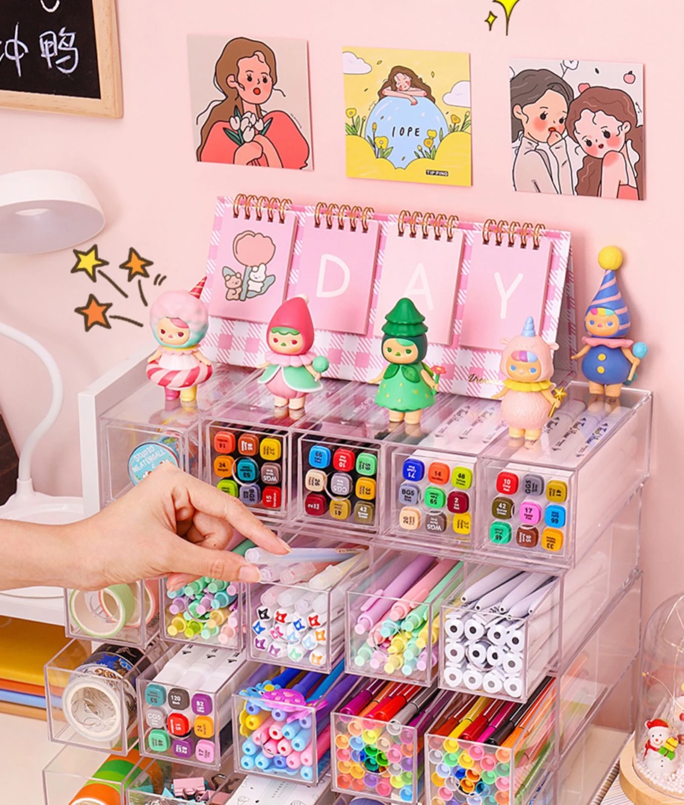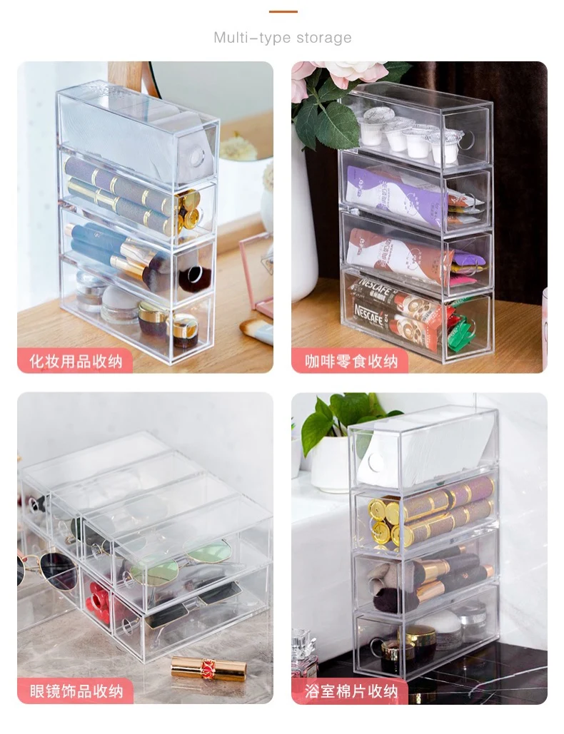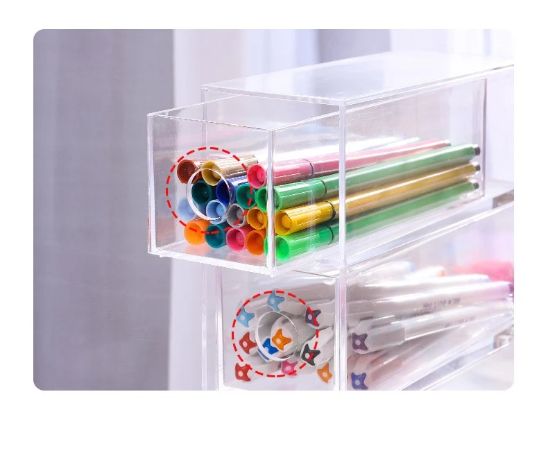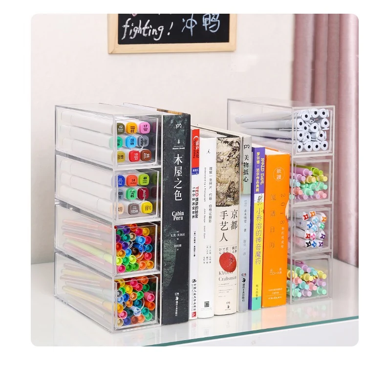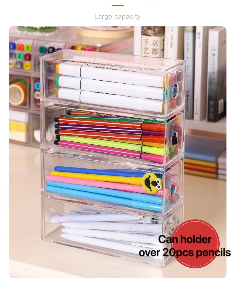 PS Drawer Type Desktop Organizer Pen Pencil Storage Box Makeup Lipstick Shelf Office School Stationery Supplies 2021