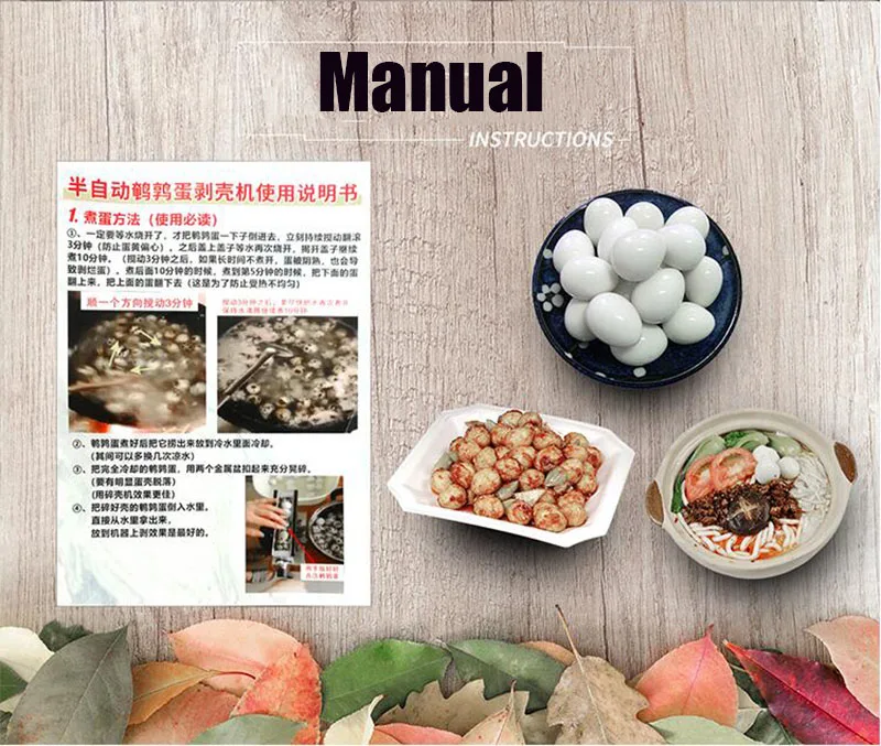 Пожалуйста, внимательно прочитайте следующие меры предосторожности для приготовления яиц. 1. Лучше всего использовать свежие перепелиные яйца, помещенные в течение 2-3 дней (лето) и 3-4 дней (зима); 2. Замочите перепелиные яйца в холодной воде; 3. Когда вода варится, Налейте яйцо, равномерно скрутите его около 5 минут и варите при высоком нагреве. После приготовления в течение 5 минут Используйте специальную вареную корзину для яиц. 4. Немедленно удалите яйца и Охладите их в холодной воде; 5. Яичная скорлупа полностью измельчена, и дробилка лучше. 6. Положите разбитое яйцо в холодную воду в течение 5-10 минут; 7. Включите питание и положите разбитое яйцо на палец, чтобы осветить его. (Когда вы кладете яйцо, нелегко наклеить яйцо с помощью водяного шланга.)