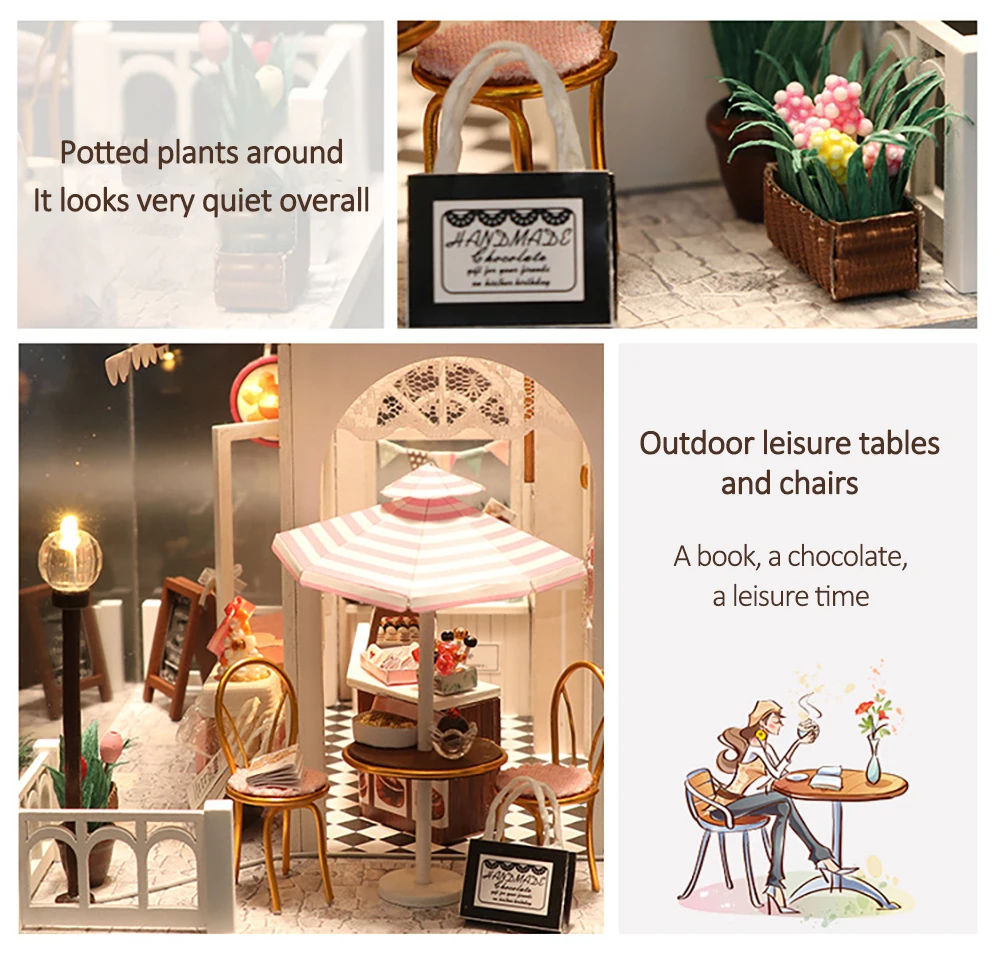 Миниатюрный дом «сделай сам» Использование продукта: 1. Отправьте детей, чтобы проявить терпение и заботу; 2. Искренние благословения родственникам; 3. Собирайте самостоятельно; 4. Даю другу в подарок на день рождения; 5. Оставьте хорошие воспоминания своей девушке. Все товары такие же, как на картинке. Они поставляются с деталями, и вам нужно собрать их самостоятельно. 1. Включая всю мебель на дисплее 2. Размер готового продукта: 20*16*16 см 3. Материал: дерево, ткань, бумага, смола, пластик, материал 4. Инструкция: с инструкциями 5. Стиль: европейский 6. Модель: кофейник 7. Необходимые ручные инструменты: ножницы, ножи, Дыроколы, точные пинцеты, отвертки, клеи 8. Товар имеет детали и должен быть собран Примечание: 1. Не включает в себя инструменты/клей/батареи. 2. Возраст: подходит для детей старше 8 лет