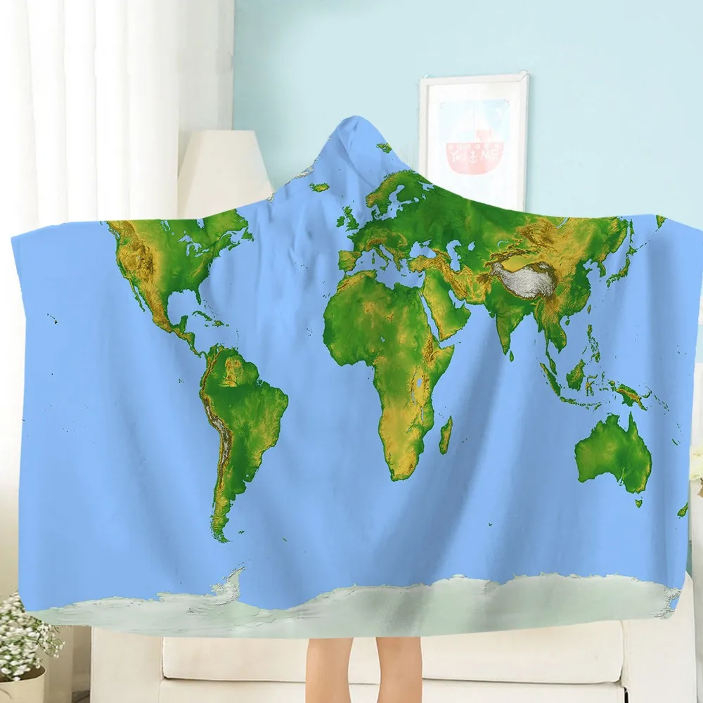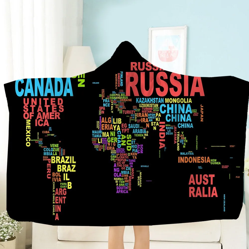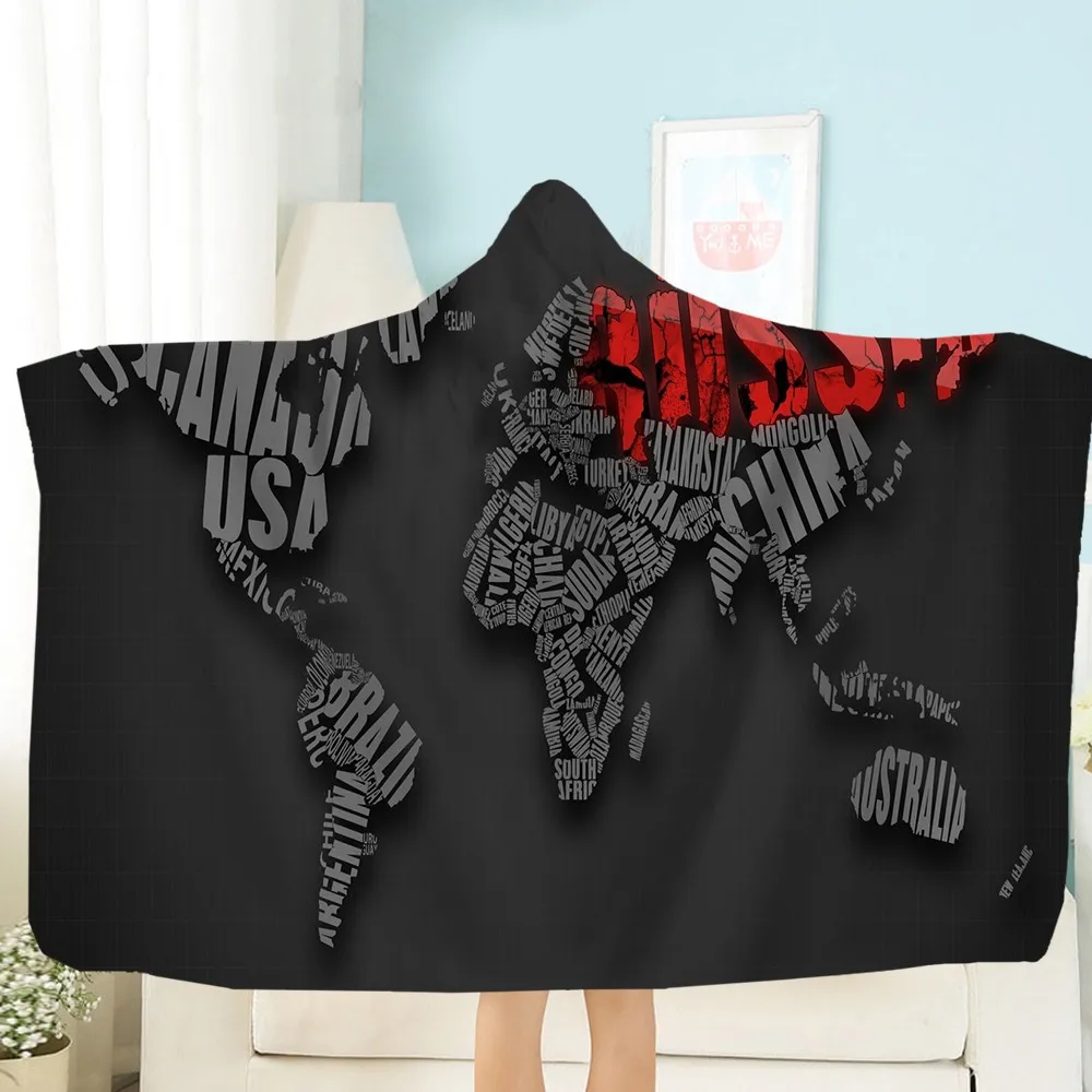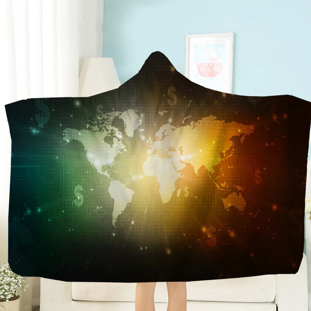 Плюшевое одеяло с капюшоном с объемным рисунком из мультфильма «научная фантастика», Карта мира, модная технология, теплое одеяло для кровати/дивана/сна, можно носить одеяло