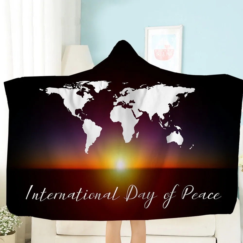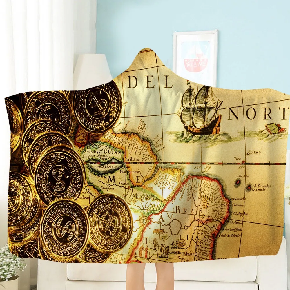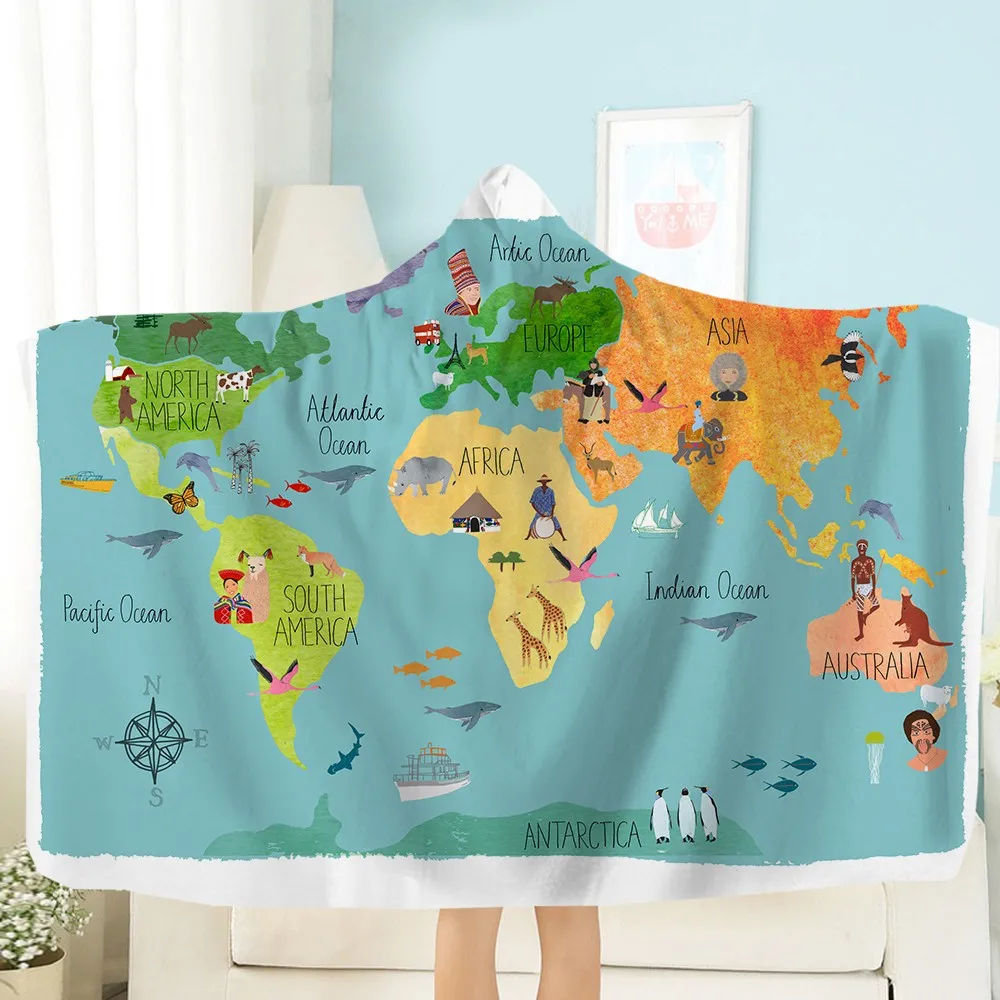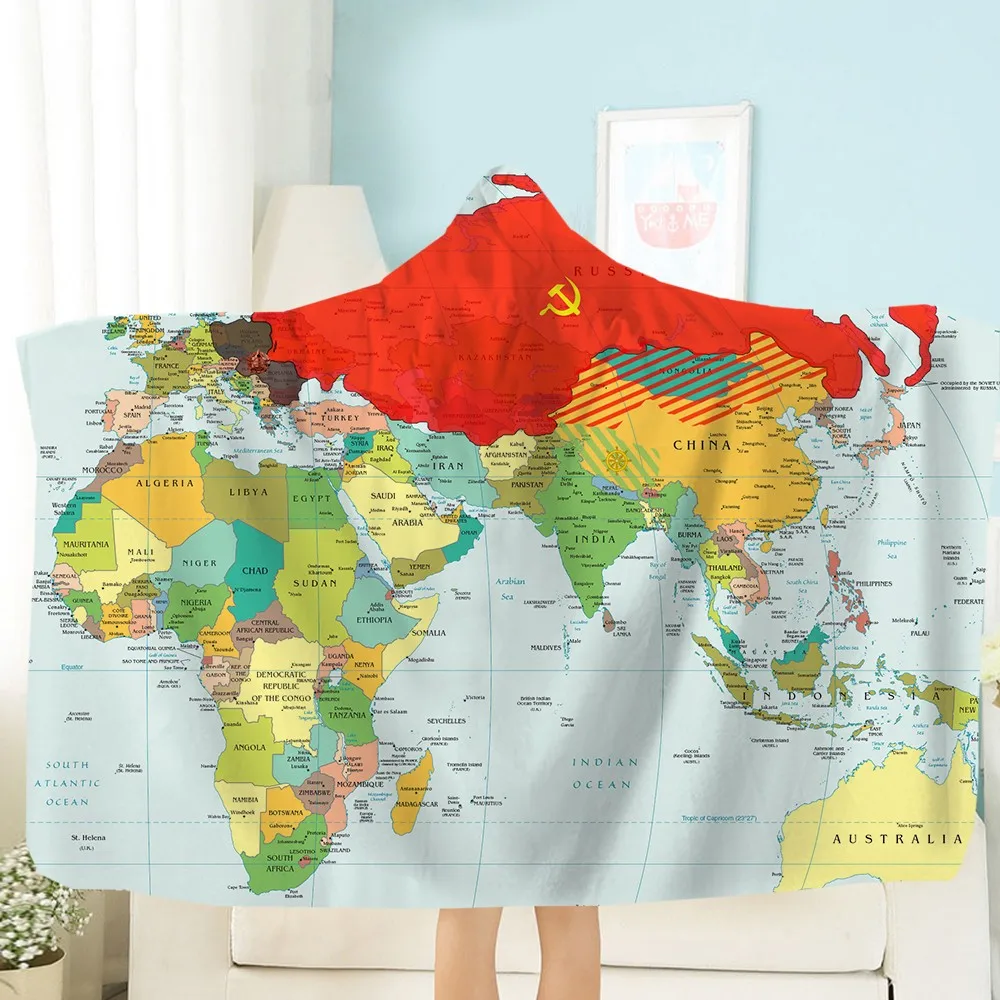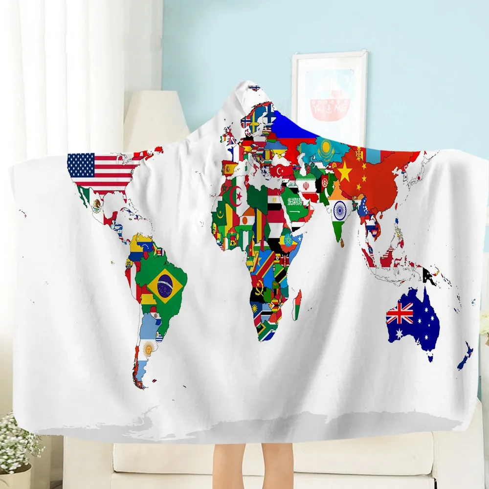 Плюшевое одеяло с капюшоном с объемным рисунком из мультфильма «научная фантастика», Карта мира, модная технология, теплое одеяло для кровати/дивана/сна, можно носить одеяло