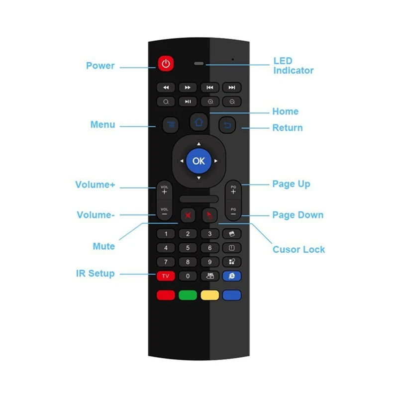 5 в 1 Функция: 1. Пульт дистанционного управления; 2.Air мышь; 3. Беспроводная клавиатура; 4.IR режим; 5, более 10 м контроль