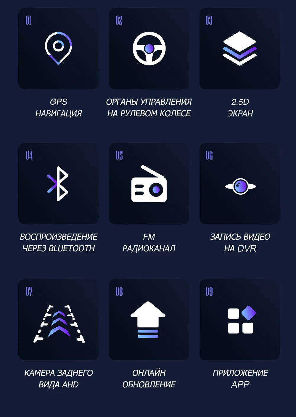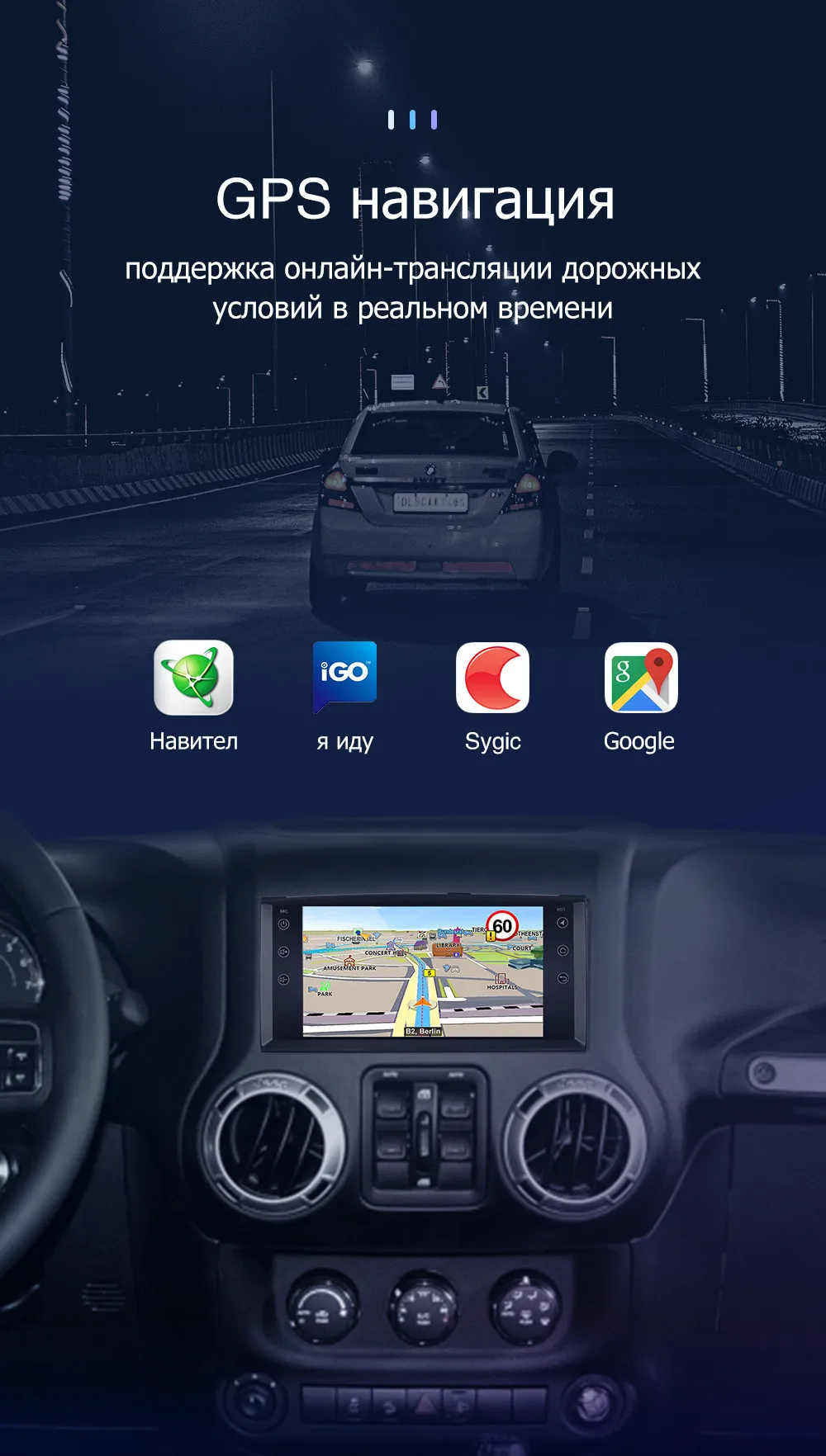 Новое поступление: . ОС: Операционная система Android RAM + ROM:1G + 16G 2G + 16G 2G + 32G Поскольку система занимает внутреннюю память, операционная система занимает около 4-6 ГБ памяти. Бесплатная установка карта ЦП: четырехъядерный Поддержка изменения логотипа, пароль заводского набора: 8888, изменение логотипа Разъем питания: подключи и работай Встроенный GPS -Поддержка 2D HD и 3D карт Разрешение: 1024*600 пикселей емкостный экран --- Интернет развлечения, встроенный WiFi модуль. --- Поддержка HD 1080p видеоигр, поддержка зеркального соединения и Airplay. --- Радио: fm-радио Функция двойной зоны (пользователь может слушать музыку или радио в режиме gps-навигации) --- Встроенный Bluetooth handsfree и телефонная книга, поддержка A2DP, воспроизведение музыки напрямую по телефону. (Вы должны согласиться с авторизацией телефона и синхронизировать контактную информацию в настройках телефона) Совместимость с управлением рулевого колеса Электронная и механическая Противоударная система --- Высокомощный стерео аудио выход, поддерживает 4 динамика ---- Поддержка камеры заднего вида inpu