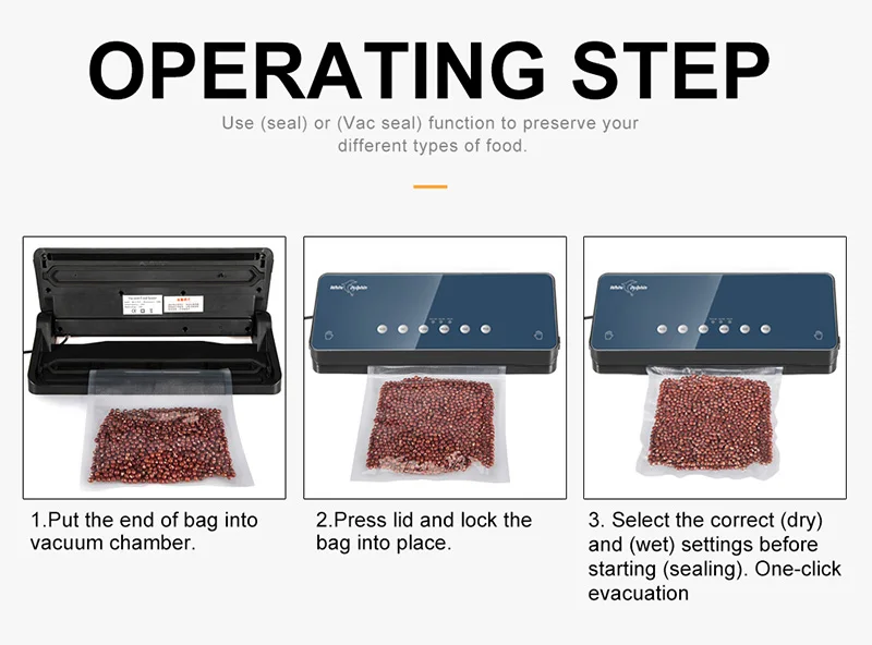 1 шт. * вакуумный упаковщик 10 шт. * сумки (Размер: 10 шт. 20*25 см) 1 шт. * шланг 1 шт. * Руководство пользователя на английском языке