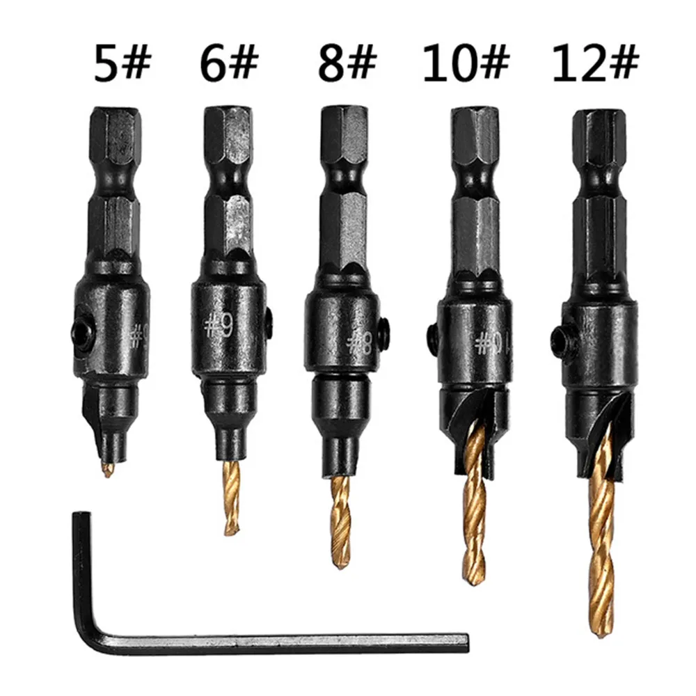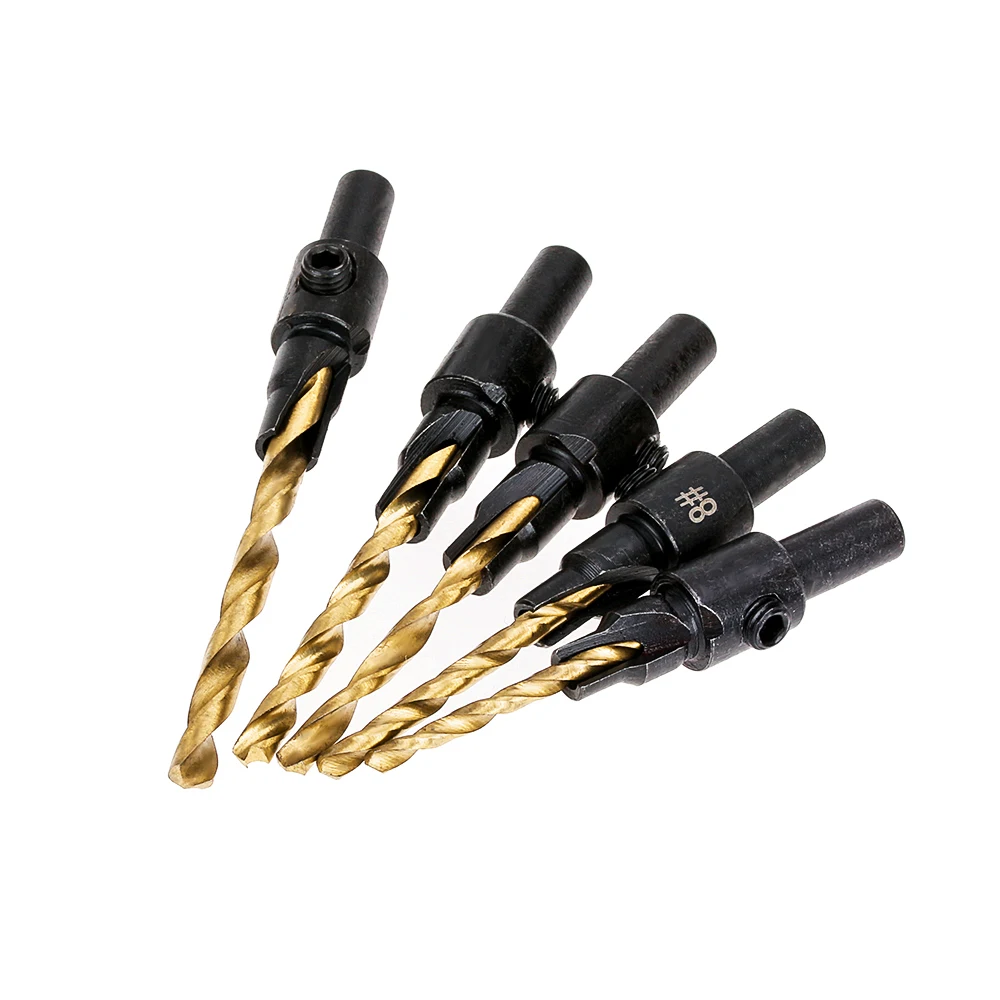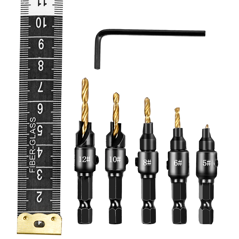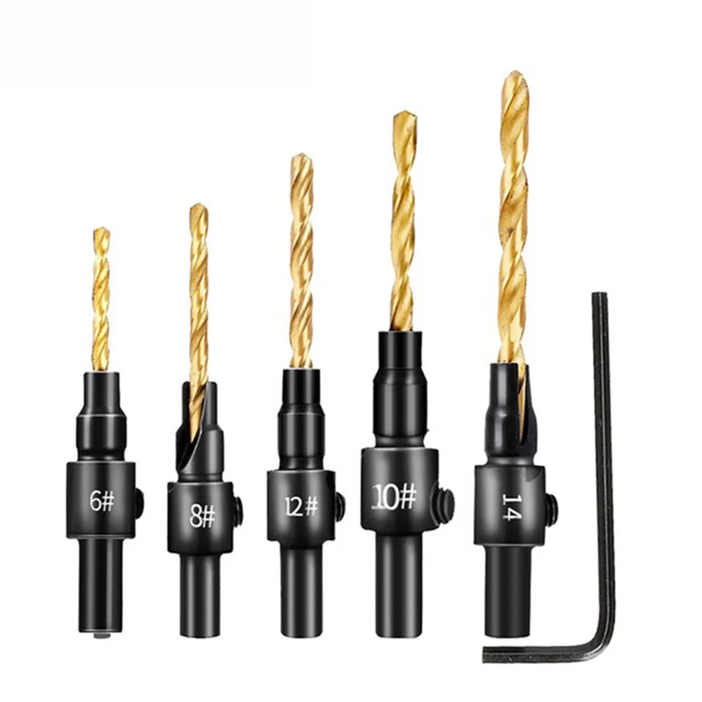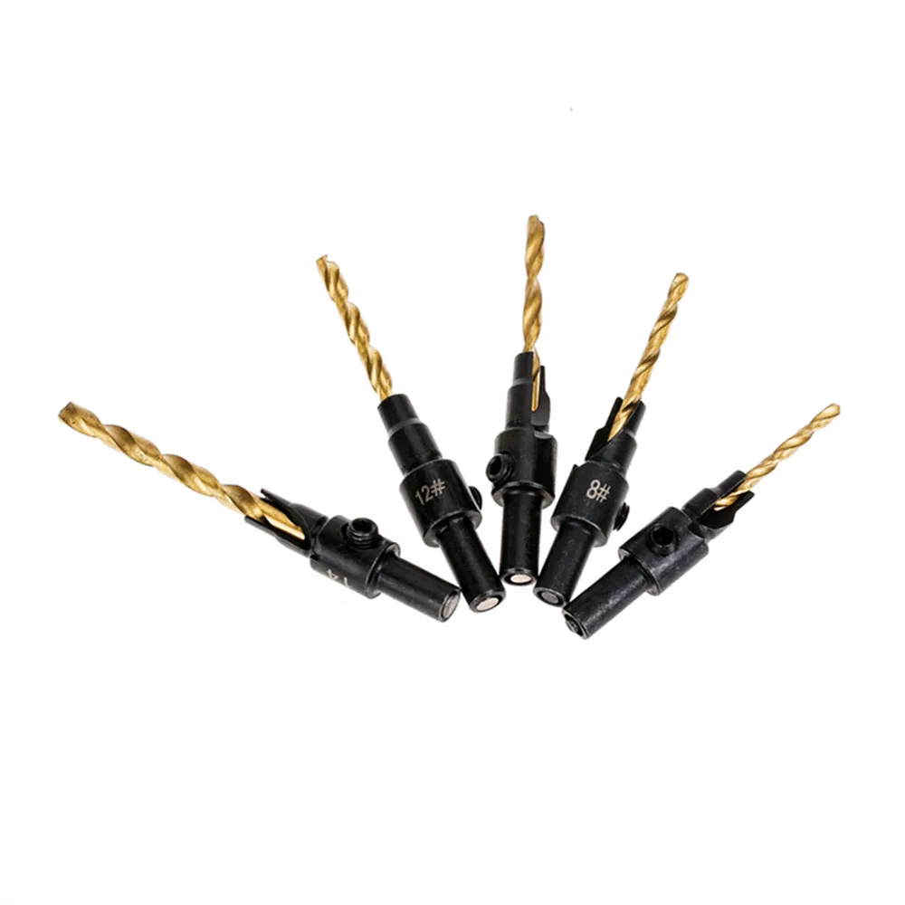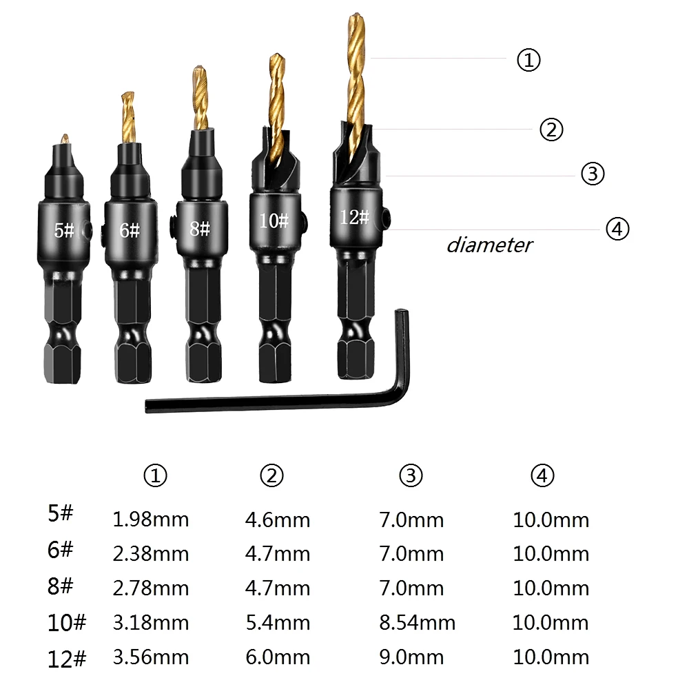 4 шт. набор включает в себя биты для сверления пилотных отверстий для винтовых размеров #5, #6,#8,#10 и #12