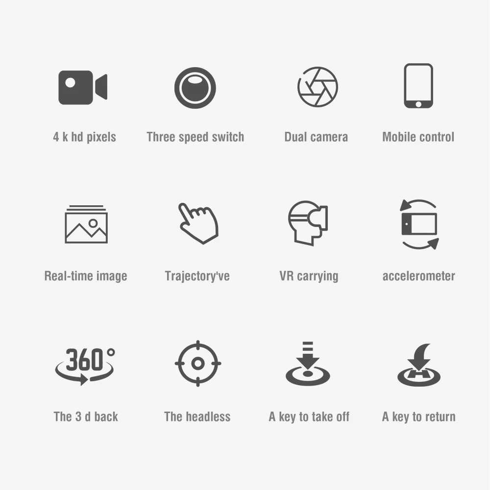 Функции: вверх/вниз, вперед/назад, влево/вправо, боковой полет, скорость полета уровня 3