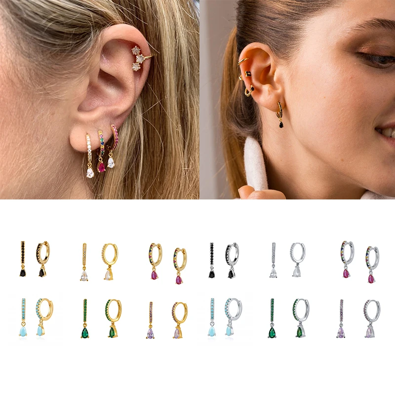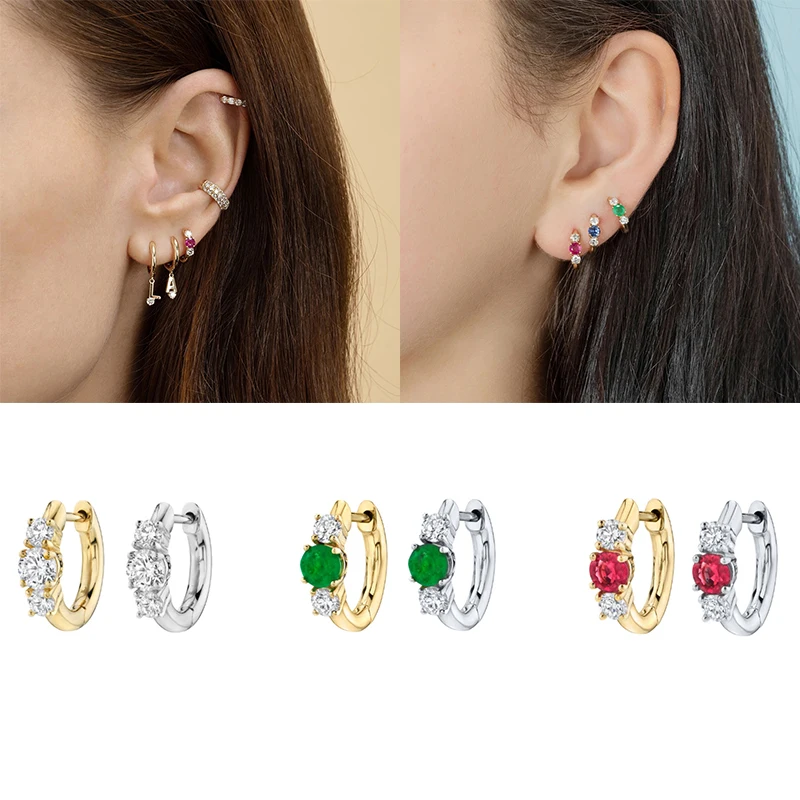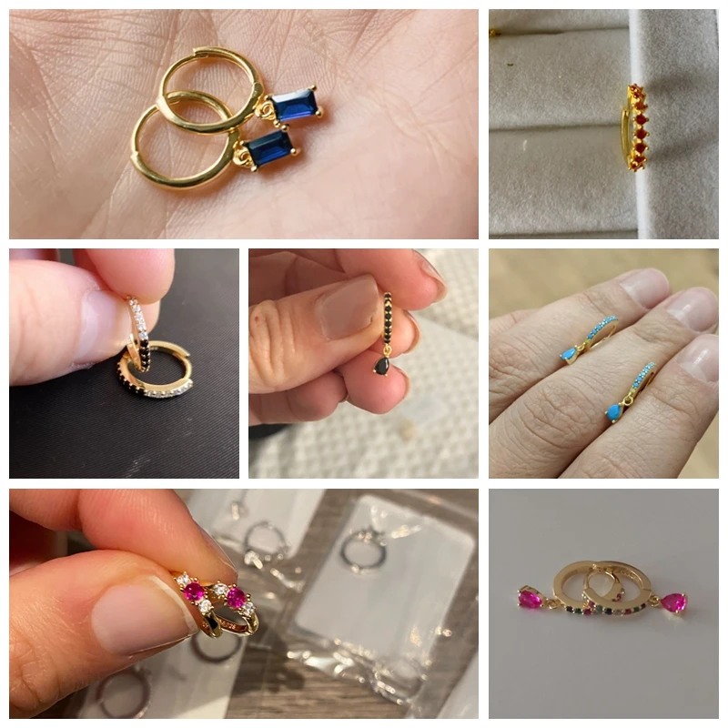 [Тип товара]:Круглые серьги-кольца с цветными кристаллами циркония