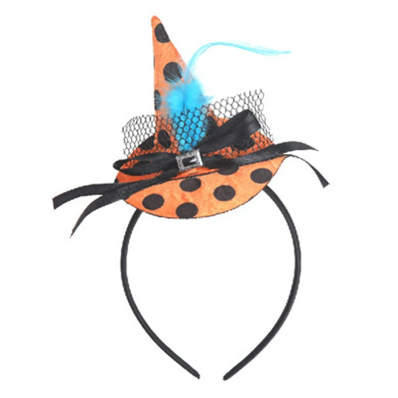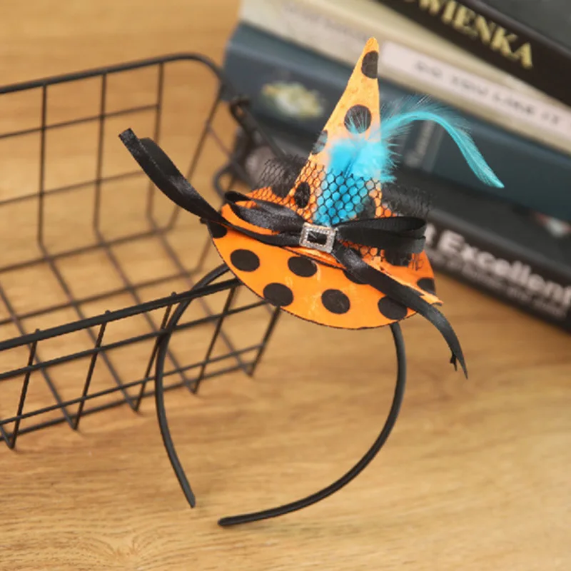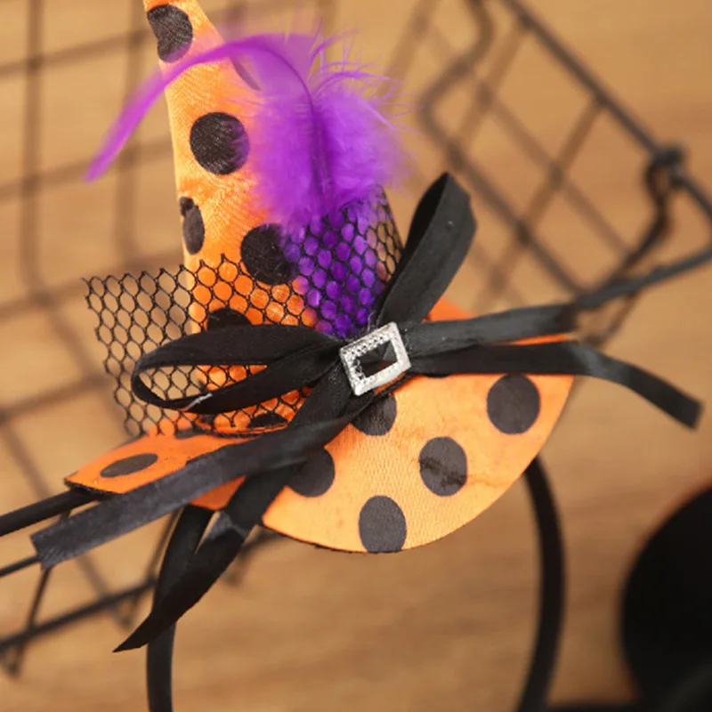 2. Красивый стиль: дизайн с маленькой шляпой ведьмы с лентой для волос, различные цвета в комплекте, подходит для темы Хэллоуина, часть дизайна пера также делает его более изысканным и красивым.