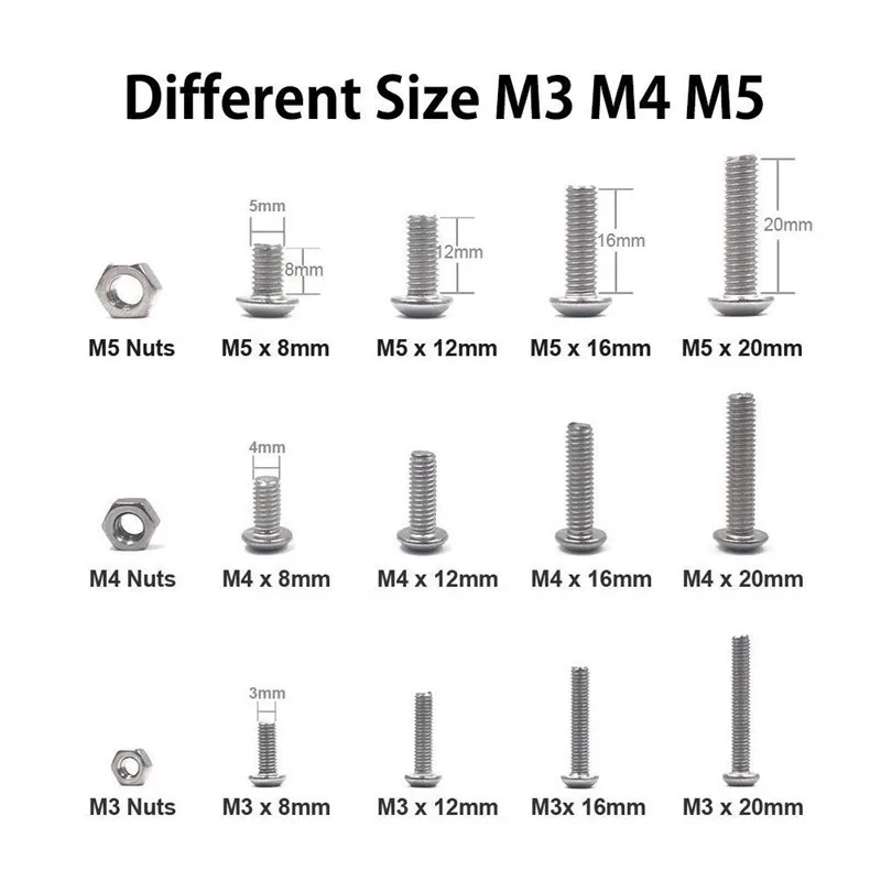 Материал: нержавеющая сталь 304; Разный размер M3 M4 M5 (включая гайки M3 M4 M5)