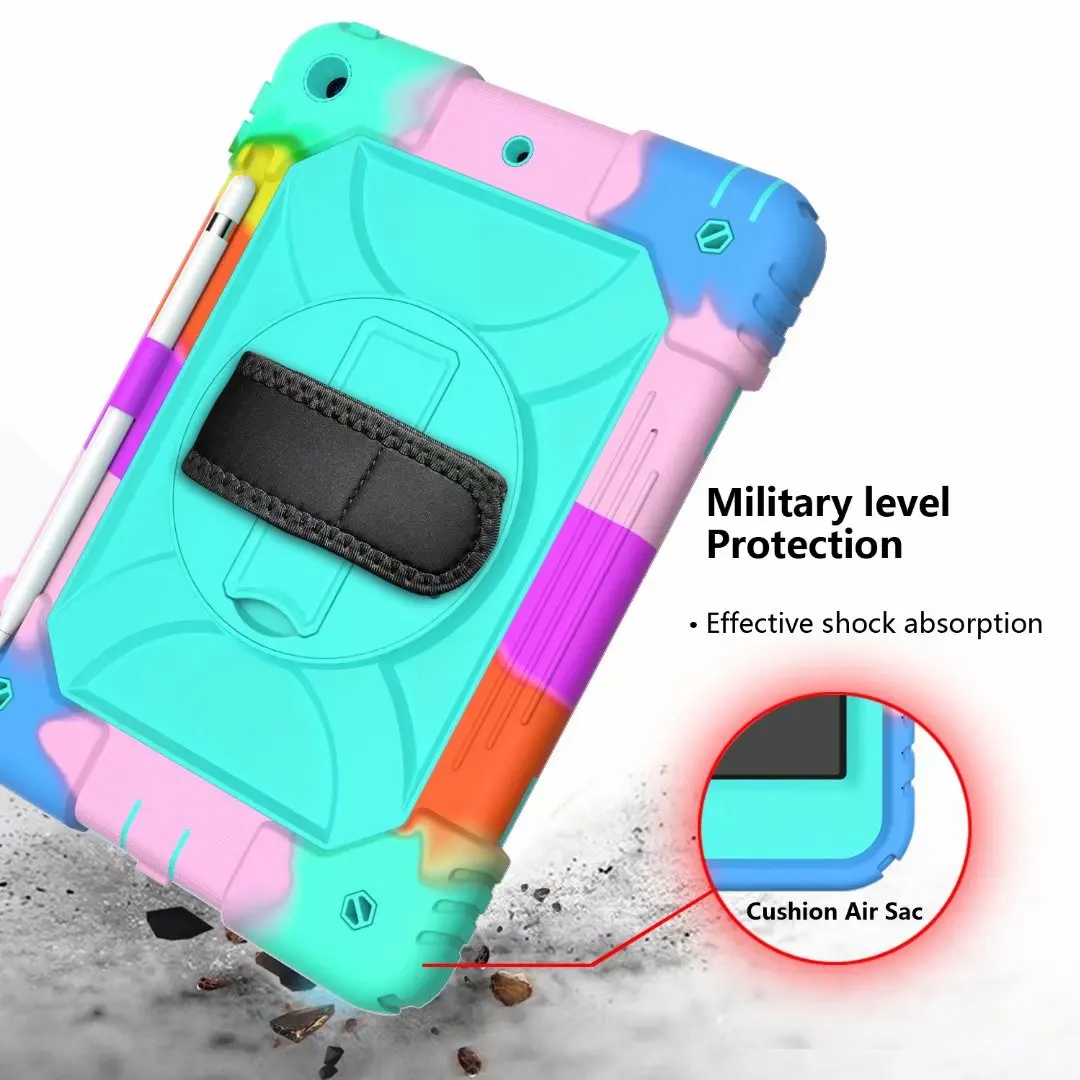 1. Два контрастных цвета. 2. ПК + силикон 3 в 1 тройная защита. 3. Контрастная цветная жесткая конструкция коробки. 4. 360 Вращающийся Kicstand supprt. 5. Плечевой ремень и ремешок на руку доступны. С держателем для карандашей 6. Полная функциональность всех кнопок, датчиков, камер, вспышек, сенсорных удостоверений. 7. Легко доступны зарядные шнуры и мини-разъем для стереонаушников. 8. Подходит для любой группы людей. 9. Специальный защитный чехол для детей.
