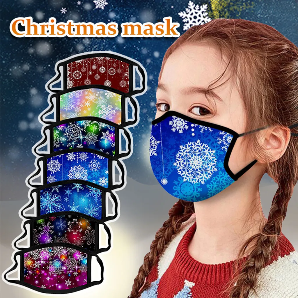 Детская Рождественская моющаяся и многоразовая защитная маска для лица с принтом снежинки