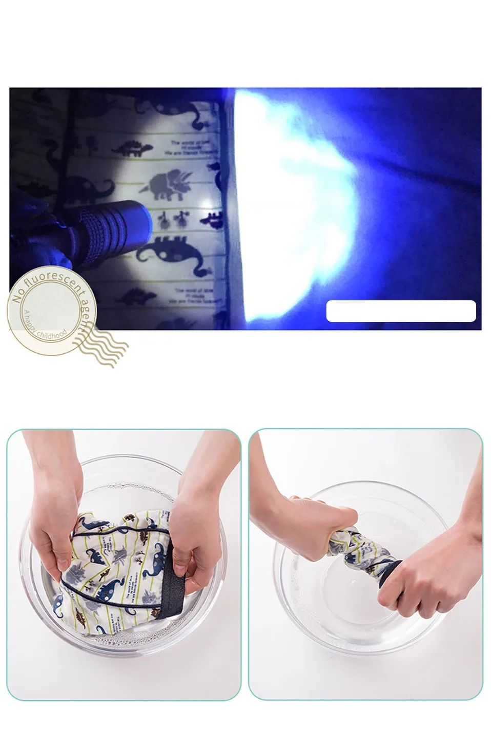 Высокая устойчивость к цвету, отсутствие флуоресцентных агентов, здоровая ткань, безопасная для детей