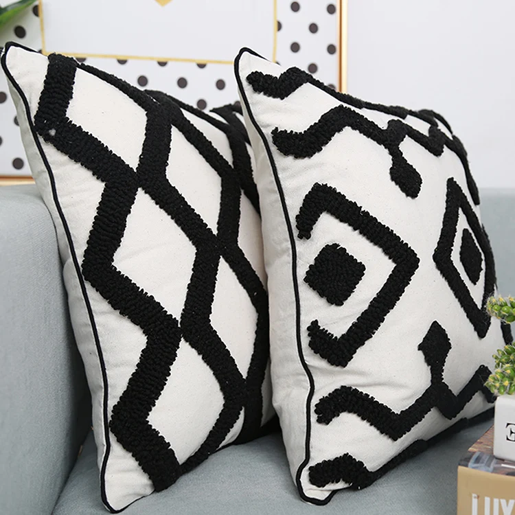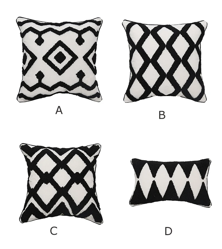 Черно-белый чехол для подушки 45x4 5 см/30x50 см, наволочка с ворсом и геометрическим рисунком для Netural украшения дома, гостиной, спальни, стула