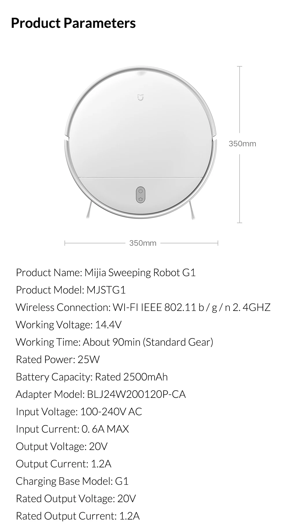Xiaomi Mijia робот с вакуумной шваброй основные характеристики G1