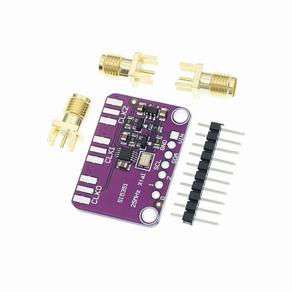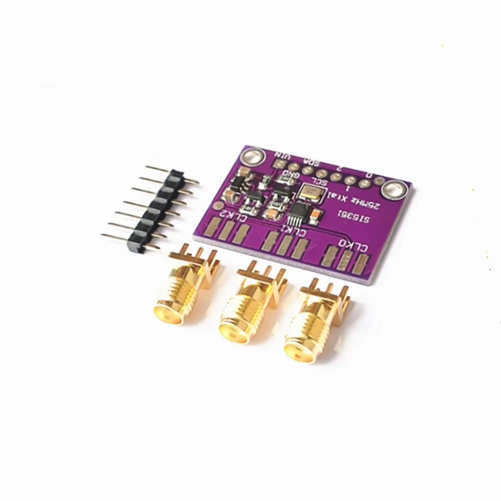 В Si5351A тактовый генератор представляет собой I2C часы контроллера генератора. Он использует встроенные точные часы для управления несколькими разделителями PLL и часов с помощью инструкций I2C. Путем настройки PLL и разделителей вы можете создавать точные и произвольные частоты. Есть три независимых выхода, и каждый из них может иметь различную частоту. Выходы 3Vpp, либо через дружественный к макету заголовок или, для работы RF, дополнительный разъем SMA.