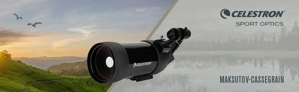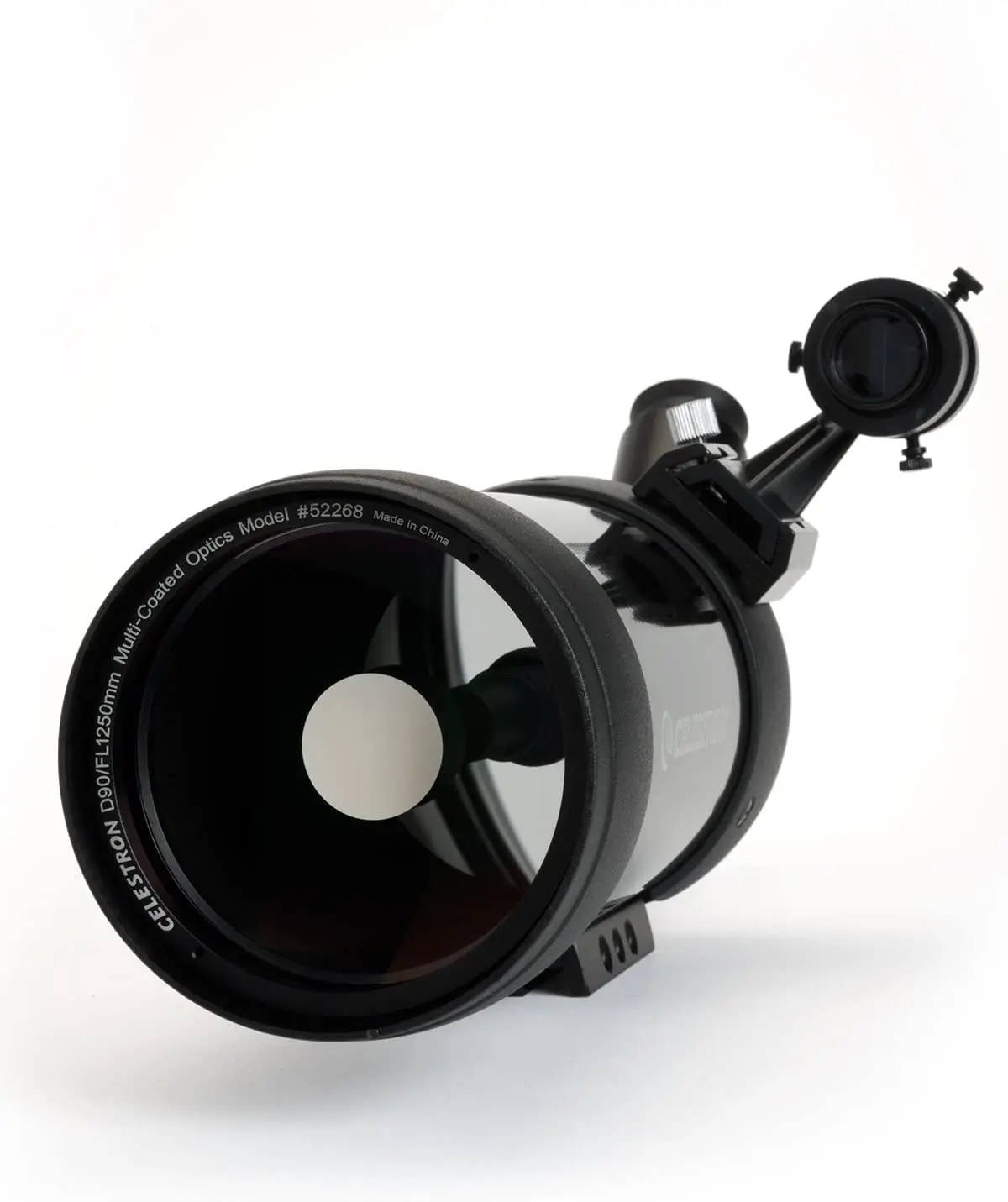 Maksutov-Cassegrain конструкция C90 использует сочетание зеркал и линз; Эта «сложенная» оптическая система имеет фокусное расстояние 1250 мм в корпусе всего двенадцать дюймов в длину. Дизайн Maksutov обеспечивает высокомощный обзор без следов хроматической аберрации, также называемой синей окантовкой, что может искажать высокомощные взгляды в конкурирующих оптических прицелах в виде рефрактора. При 40-кратном увеличении, когда некоторые недорогие прожекторы начинают казаться нечеткими, с90 только начинает работать. C90 использует те же 2,5-дюймовые окуляры, что и в астрономических телескопах. Стандартное оборудование 32 мм окуляр plossl дает увеличение 39X, но многие другие окуляры могут использоваться для изменения увеличения.