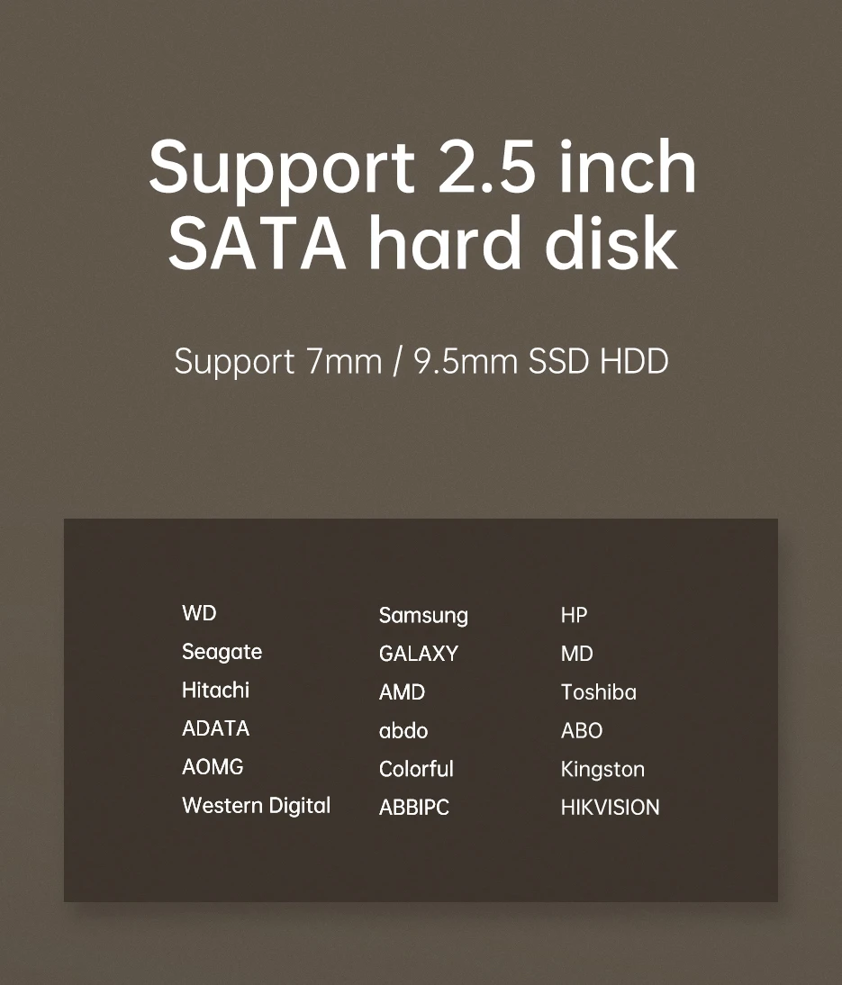 Примечание: Этот продукт содержит только жесткий диск и кабель для передачи данных, не включая жесткий диск. Особенности: 1. Поддерживает все стандартные матрацы для 7 мм/9,5 мм 2,5 дюймов SATA I/II/III HDD и SSD до 6 ТБ (макс) 2. Установка без инструментов; Подключи и работай с горячей заменой; Светодиодный индикатор; Не требуется перезагрузка или дополнительный драйвер. 3. Micro sd слот для карт памяти Совместимые Операционные системы: Windows 98 / 2000 / XP / Vista / 7 / 8 / 10, Linux, Mac OS 9,1/10.8.4 выше.
