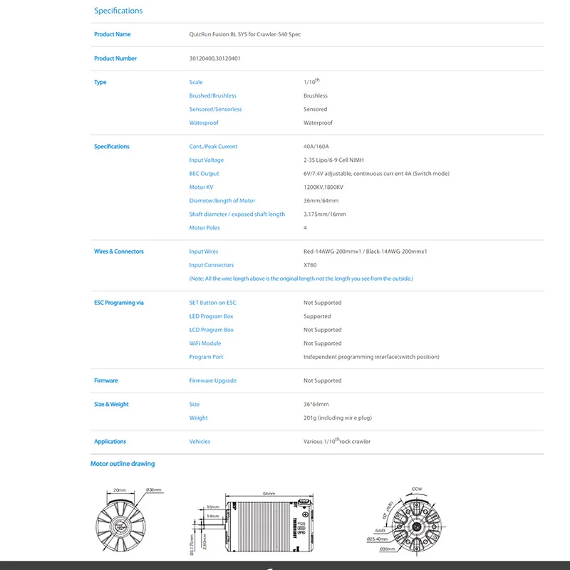 Quicrun Fusion 2в1 комбинированный двигатель со встроенным ESC! -Интегрированная конструкция патентной технологии Hobbywing-интеллектуальная выходная мощность крутящего момента и скорость замкнутого управления для легкого управления-FOC (полевой контроль) Для супер линейности и высокого крутящего момента и экстремального отключения звука-подходит для всех погодных условий и условий трека-Высокая эффективность вождения для длительного срока службы батареи-профессиональная регулировка тормозов и супер емкость парковки-усовершенствованный и безопасный электронный переключатель hombywingdirect.com интегрированный конструкция ESC делает общий объем только размером 550 двигателя, общий вес всего 201 г, Что делает расположение и проводку автомобильного каркаса более простым и красивым, прекрасно решает сложность проводки из-за небольшого внутреннего пространства рок-гусеницы. Система Fusion в сочетании с интеллектуальным выходом крутящего момента и контролем скорости в замкнутом цикле означает, что система питания будет поддерживать уровень крутящего момента двигателя и оборотов в минуту по мере изменения условий транспортного средства. В гору, под гору, под нагрузкой, Интеллектуальный Выходной крутящий момент делает работу настолько простой. Система Fusion использует режим вождения FOC, низкий крутящий момент является сильным. Он работает плавно на очень низкой скорости, превосходит обычную сенсорную систему питания, даже лучше, чем матовая система питания. Кроме того, двигатель очень тихий, когда он работает. Шум вождения, который раздражает водителя, исчезает. Это лучший выбор для рок-гусеницы
