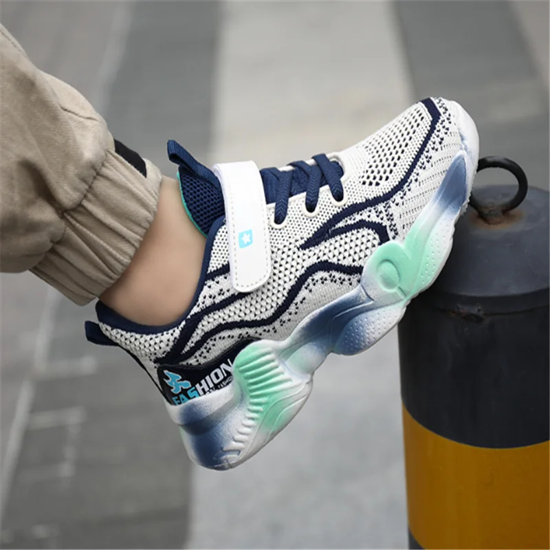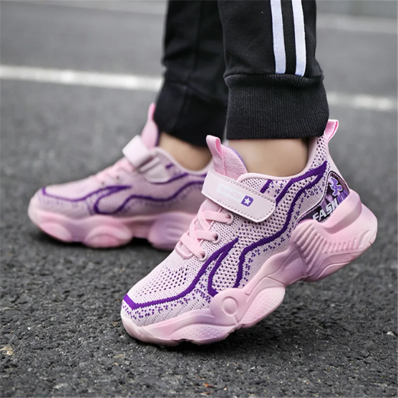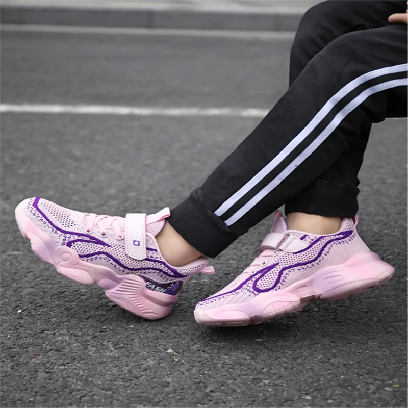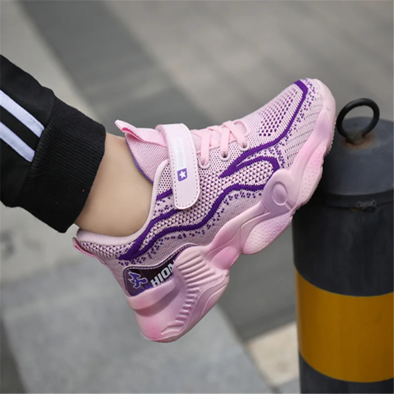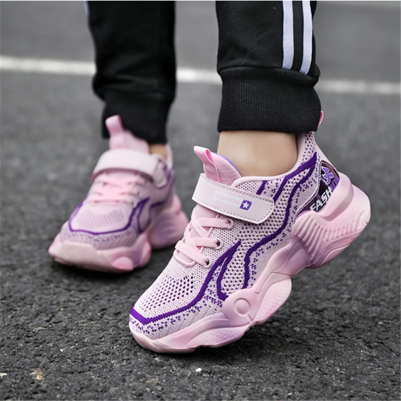 Детская спортивная обувь; Сезон весна-осень 2020 года; Новая однотонная тканая дышащая повседневная обувь для мальчиков; Модные розовые кроссовки для бега для девочек