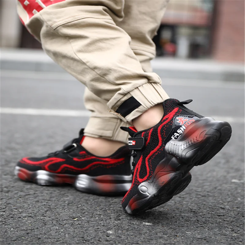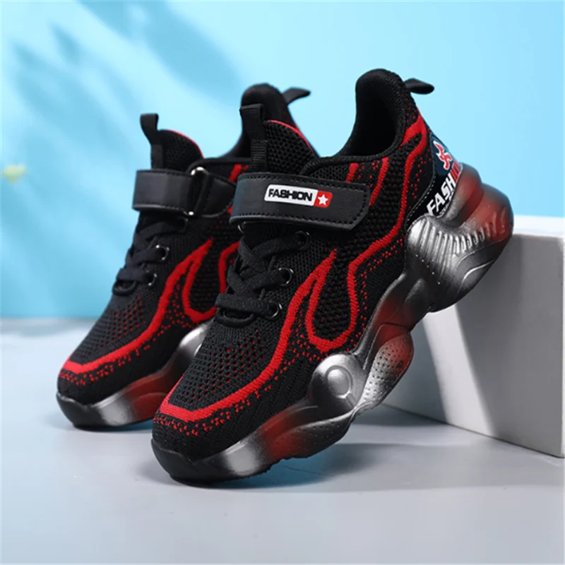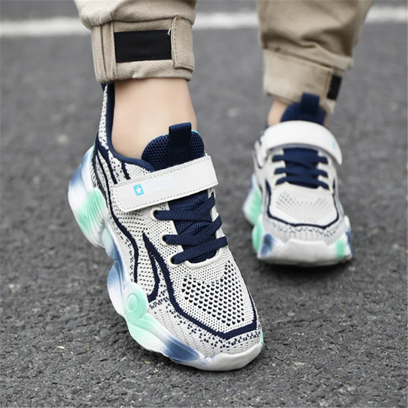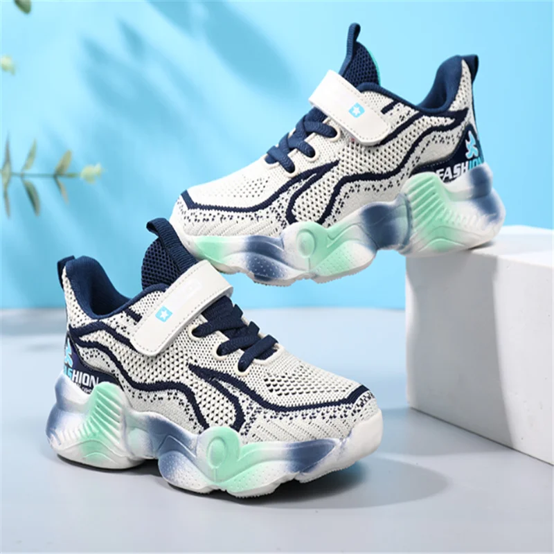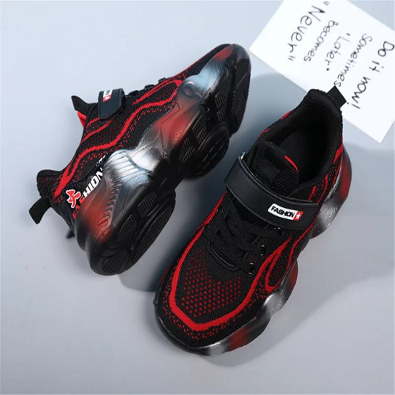 Детская спортивная обувь; Сезон весна-осень 2020 года; Новая однотонная тканая дышащая повседневная обувь для мальчиков; Модные розовые кроссовки для бега для девочек