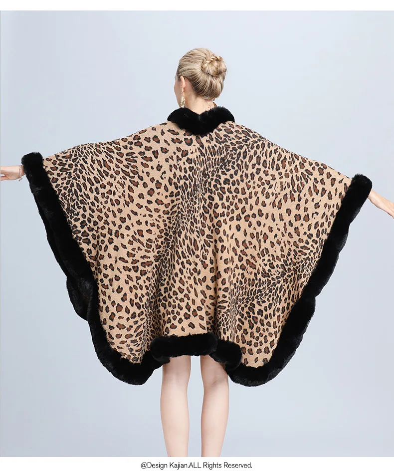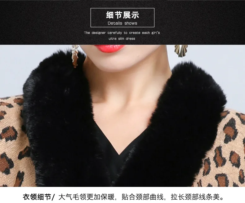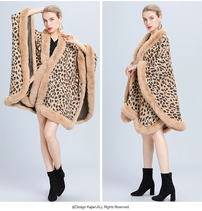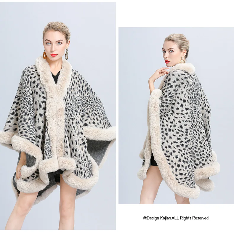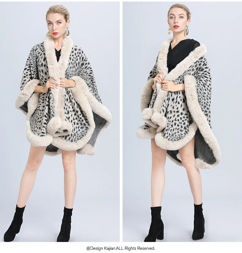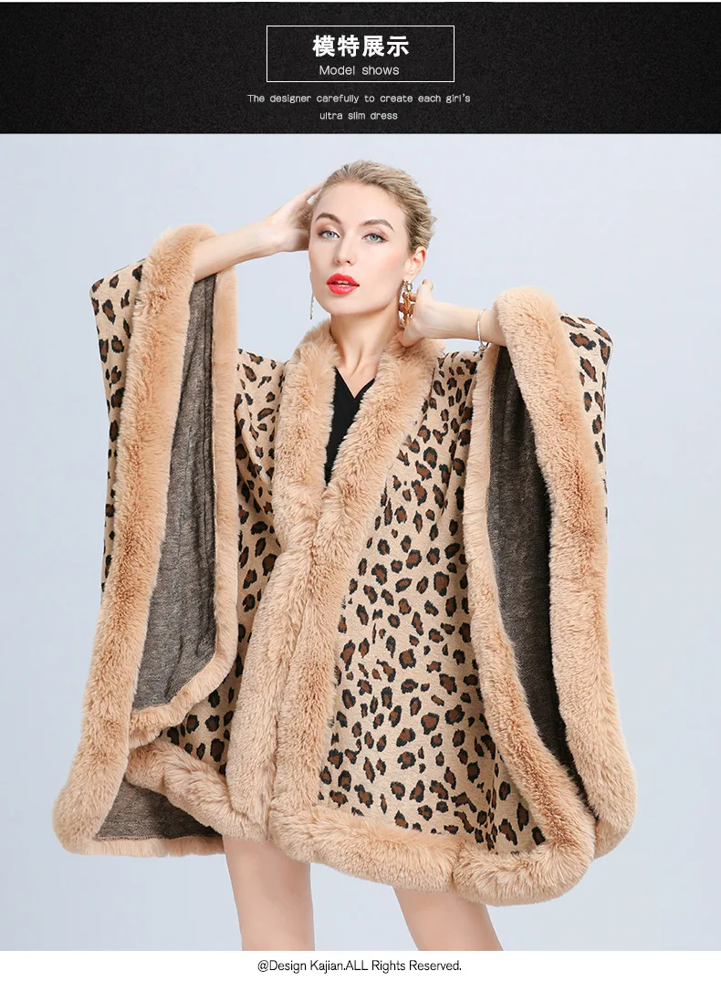 Зимний жаккардовый Плетеный плащ, толстое леопардовое пончо, пальто для женщин с воротником из искусственного меха, большой маятниковый ласточкин хвост, Свободный кардиган, шаль, одежда