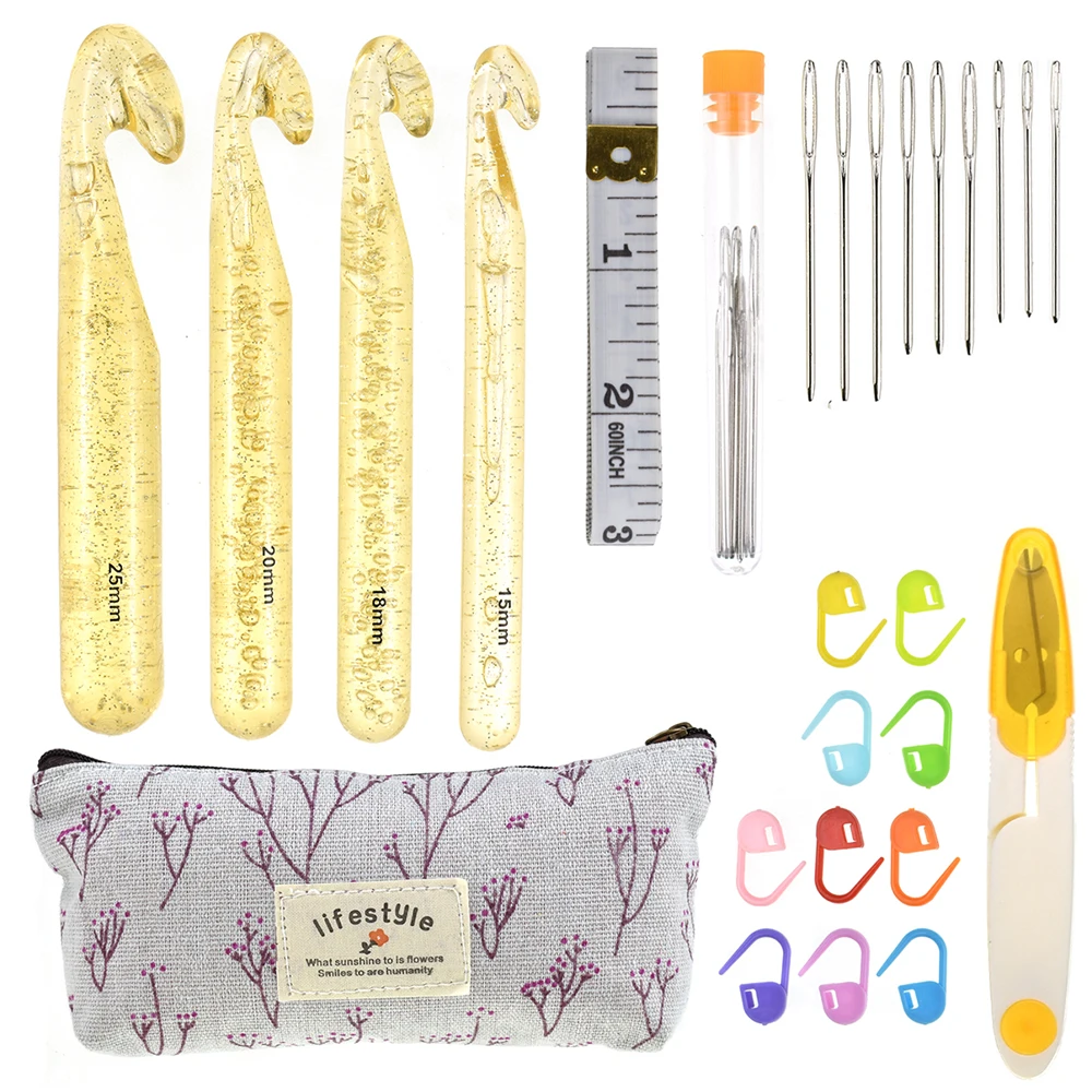 4 шт. хрустальные крючки для вязания крючком Цельнокроеное платье измерительная лента Цельнокроеное платье бутылки иглы Цельнокроеное платье ножницы 10 шт. маркер пряжки Цельнокроеное платье сумка