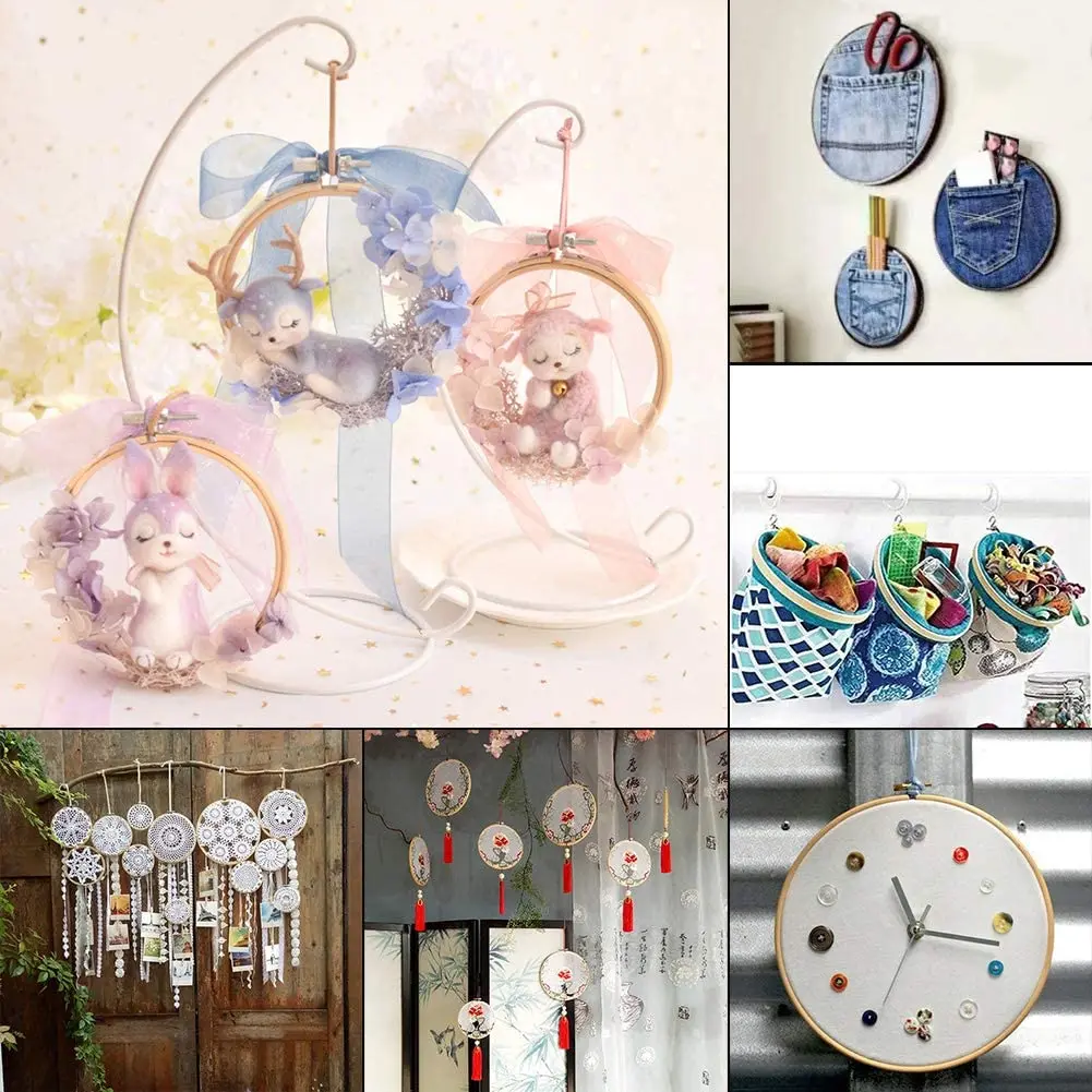 1. Экологичный и прочный материал-бамбук, без заусенцев, гладкий и безопасный для тела. 2. Внешний край, который имеет винт для затяжки, и внутренний кусок, который помещается внутри. Вы можете затянуть, когда необходимо, чтобы ткань была такой же плотной, как барабан. 3. Больше, чем стеганые, большие бамбуковые обручи используется для многих ремесленных проектов, включая венки, ловушки снов и DIY навес над кроватью или в игровой комнате.