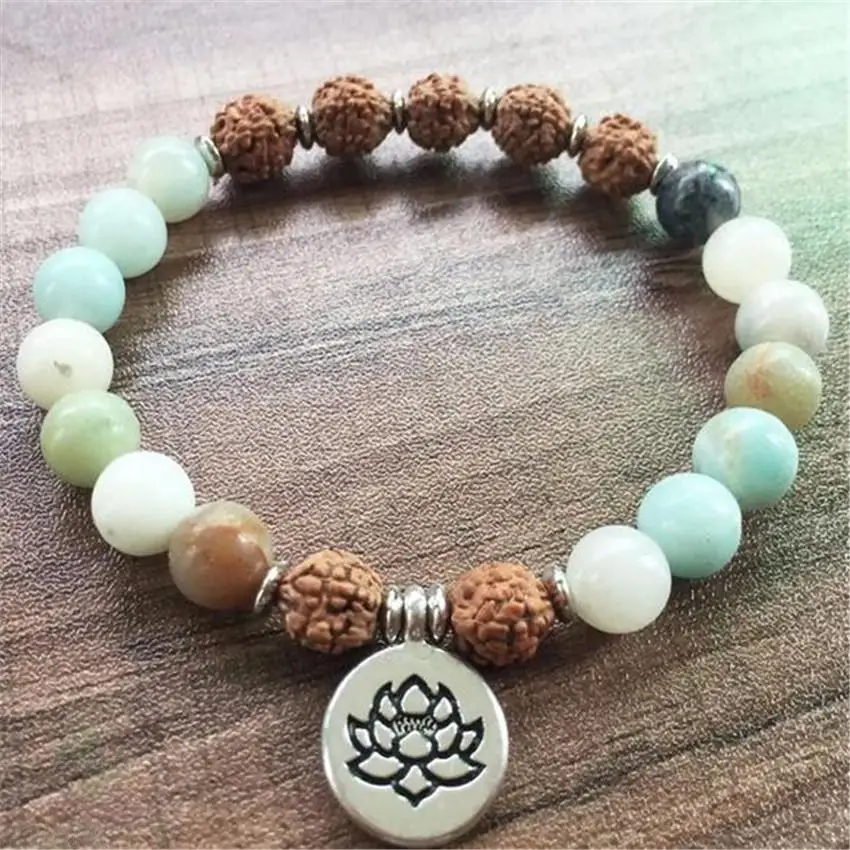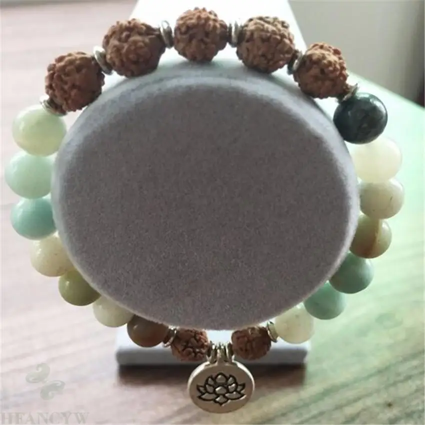 8 мм Amazon Stone медный амулет Bodhi Mala браслет 7,5 дюйма унисекс манжета из бисера запястье медитация Йога духовность драгоценный камень Bless Pray Monk