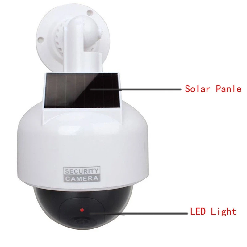 Мигающий светодиодный светильник, форма e и реалистичный цвет делают эту камеру манекена похожей на настоящую камеру наблюдения. Он может быть установлен везде в помещении или на открытом воздухе. Кроме того, режим солнечной зарядки способен заряжать батареи, чтобы продлить срок службы. Очень практично. Кроме того, он водонепроницаемый. Он будет работать нормально в дождливые дни, когда на открытом воздухе.