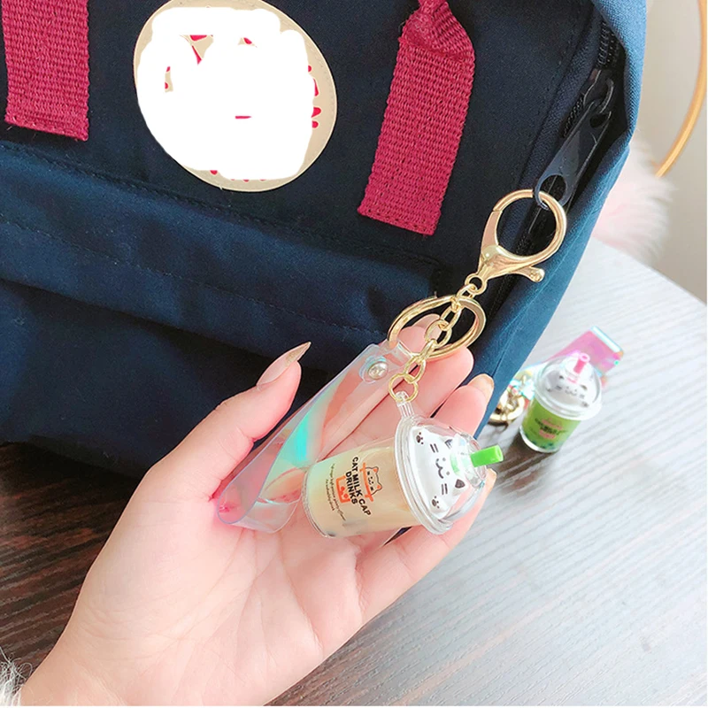 Мультяшный милый Кот брелок молочный чай чашка жидкий зыбучий песок блесток брелок для ключей сумка автомобильный кулон брелок для женщин мужчин и детей