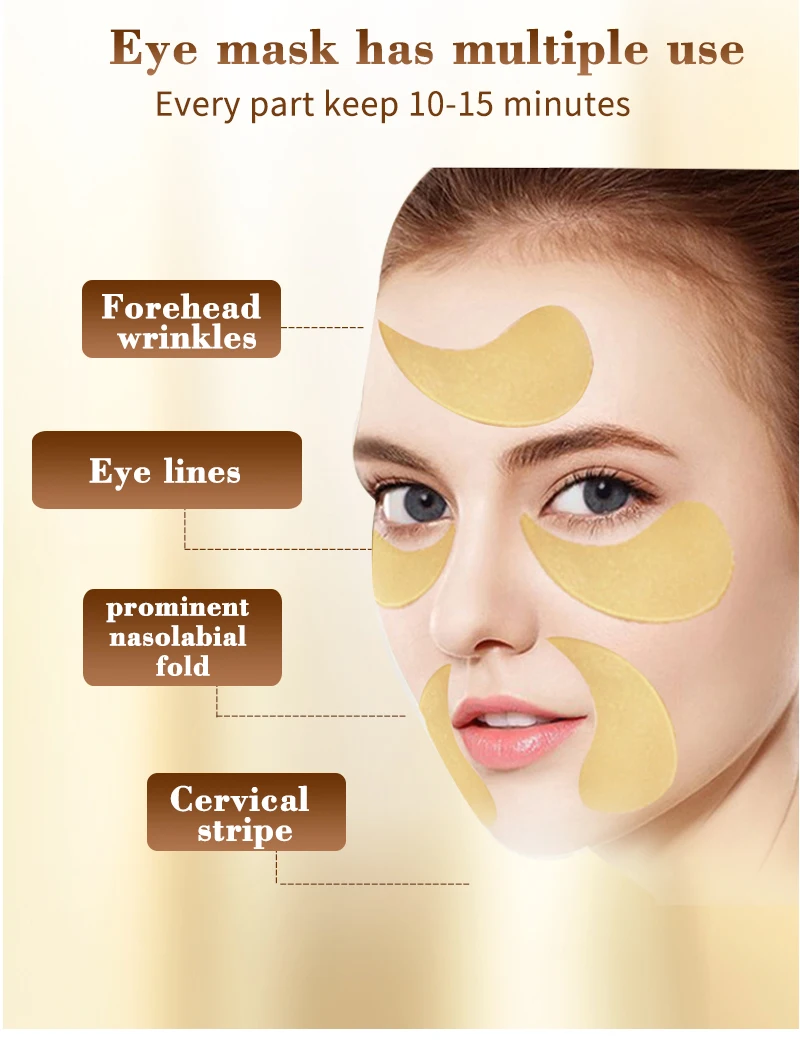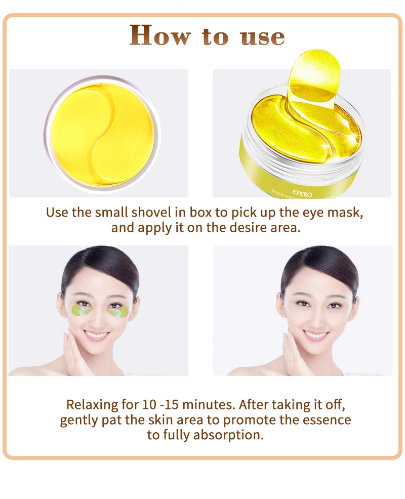 3. Маска для глаз также может быть использована на других сухих частях на лице или вокруг носогубных складок. Ваши проблемы с кожей могут быть эффективно уменьшены. 4. Удалите маску для глаз, когда она станет тоньше через 15-20 минут. Она может хорошо впитываться кожей.