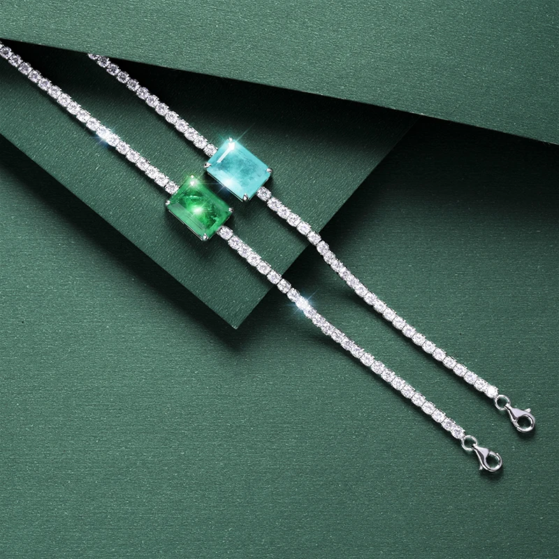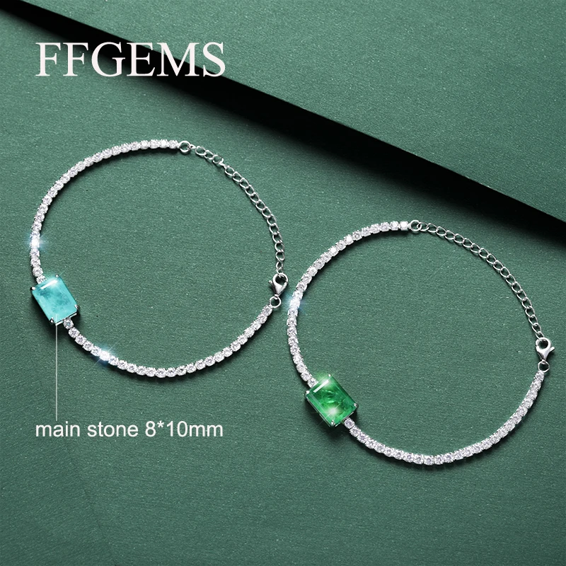 FFGEMS Параиба Турмалин изумруд драгоценный камень бриллианты браслет Шарм Теннис Браслеты Серебро Золото Цвет Хорошее ювелирное изделие оптовая коробка Основной камень: 8*10 мм Длина: 16 + 5 мм Действительно позолоченный В комплекте шкатулка для ювелирных изделий